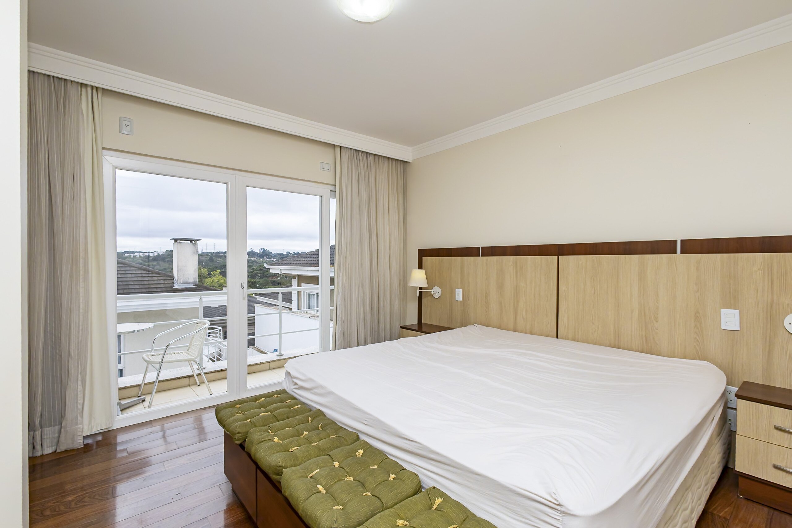 Suíte máster com sacada e acabamento refinado