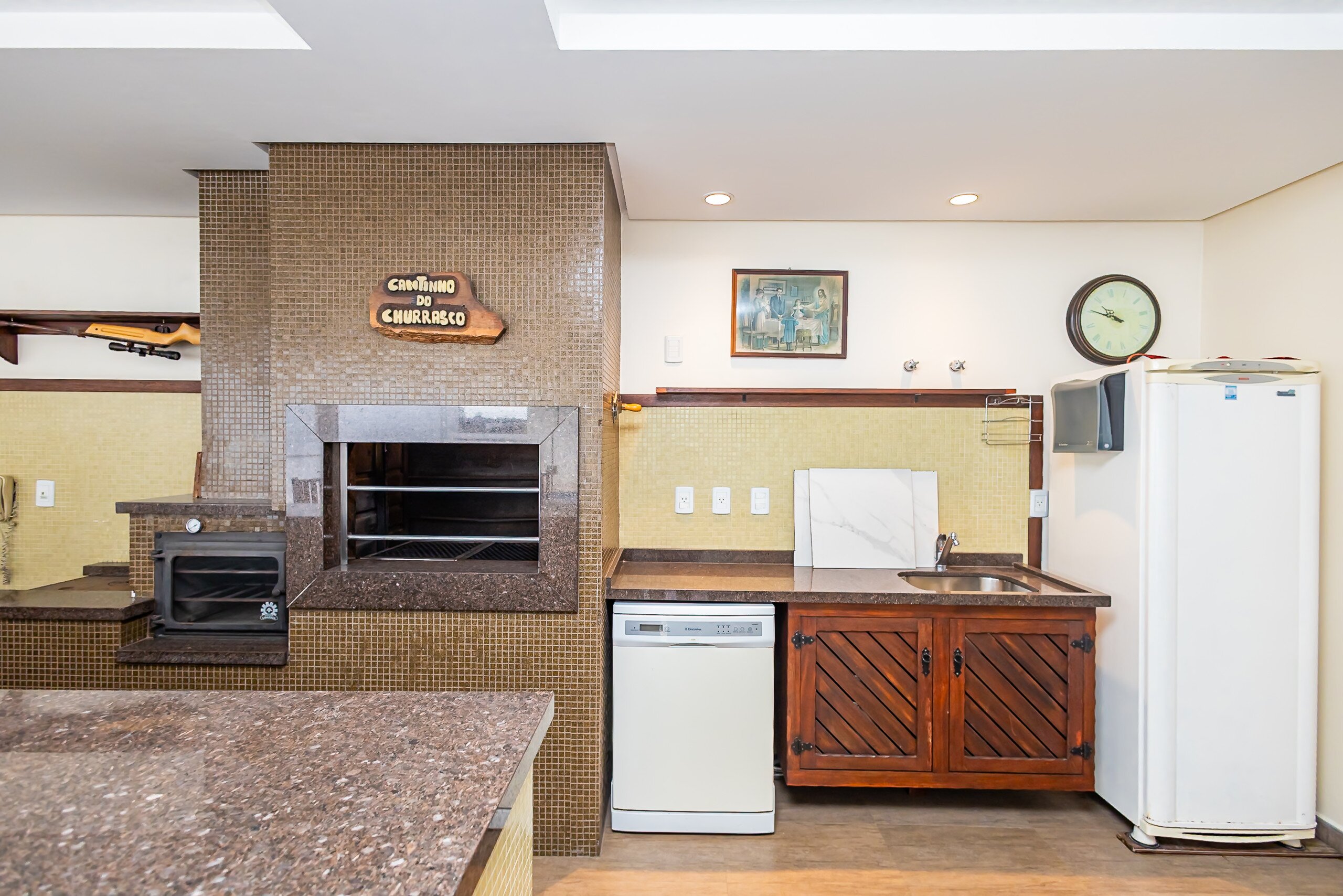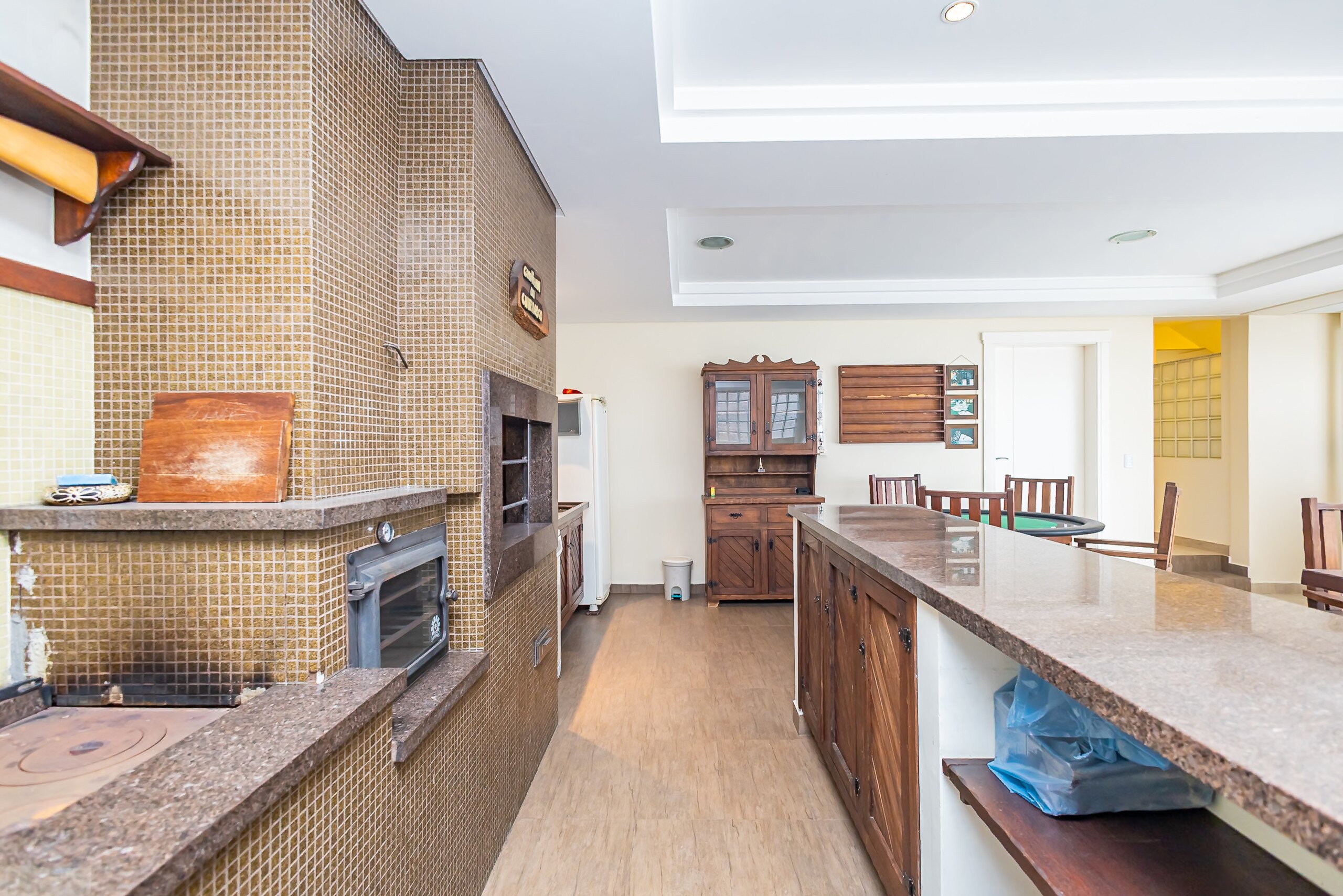 Salão de festas com churrasqueira