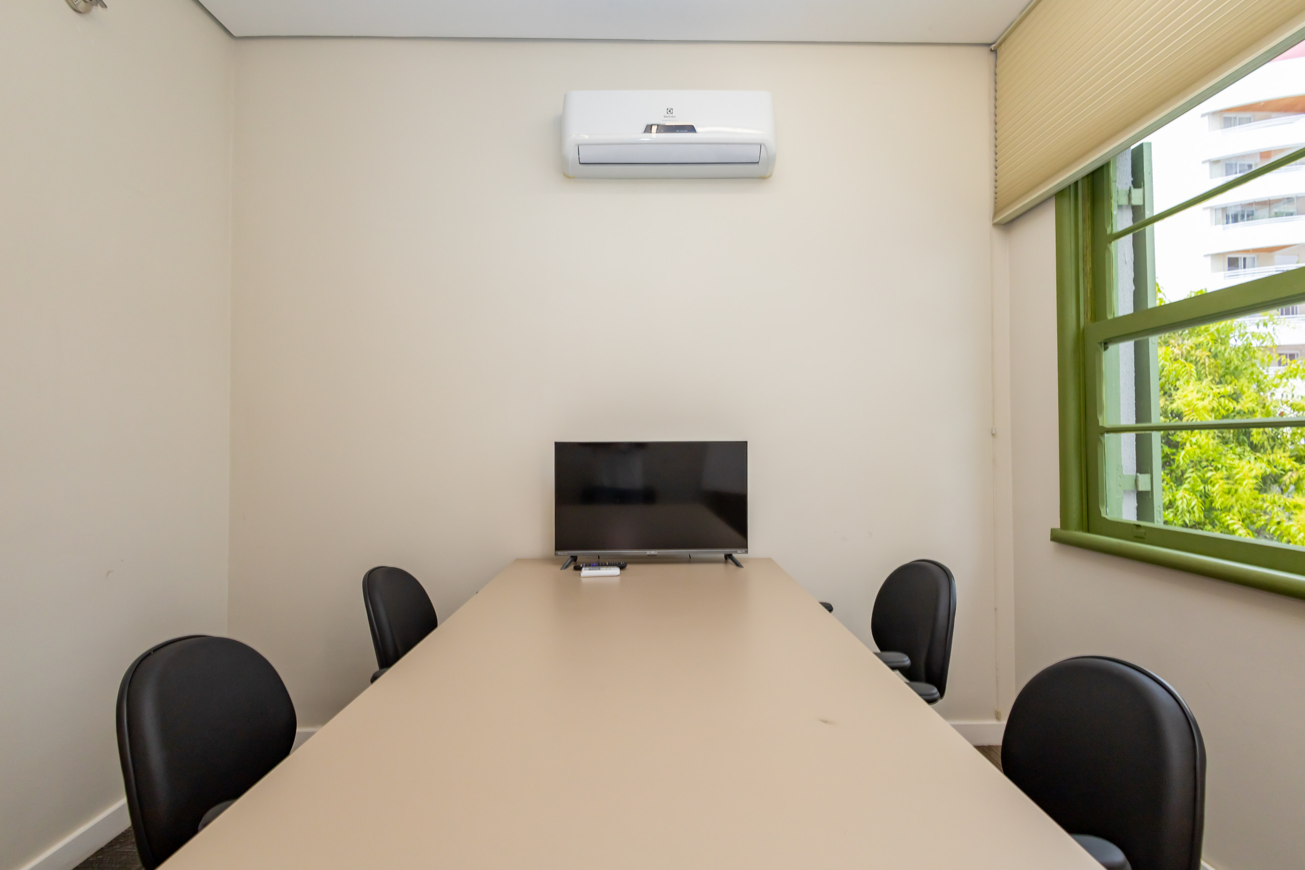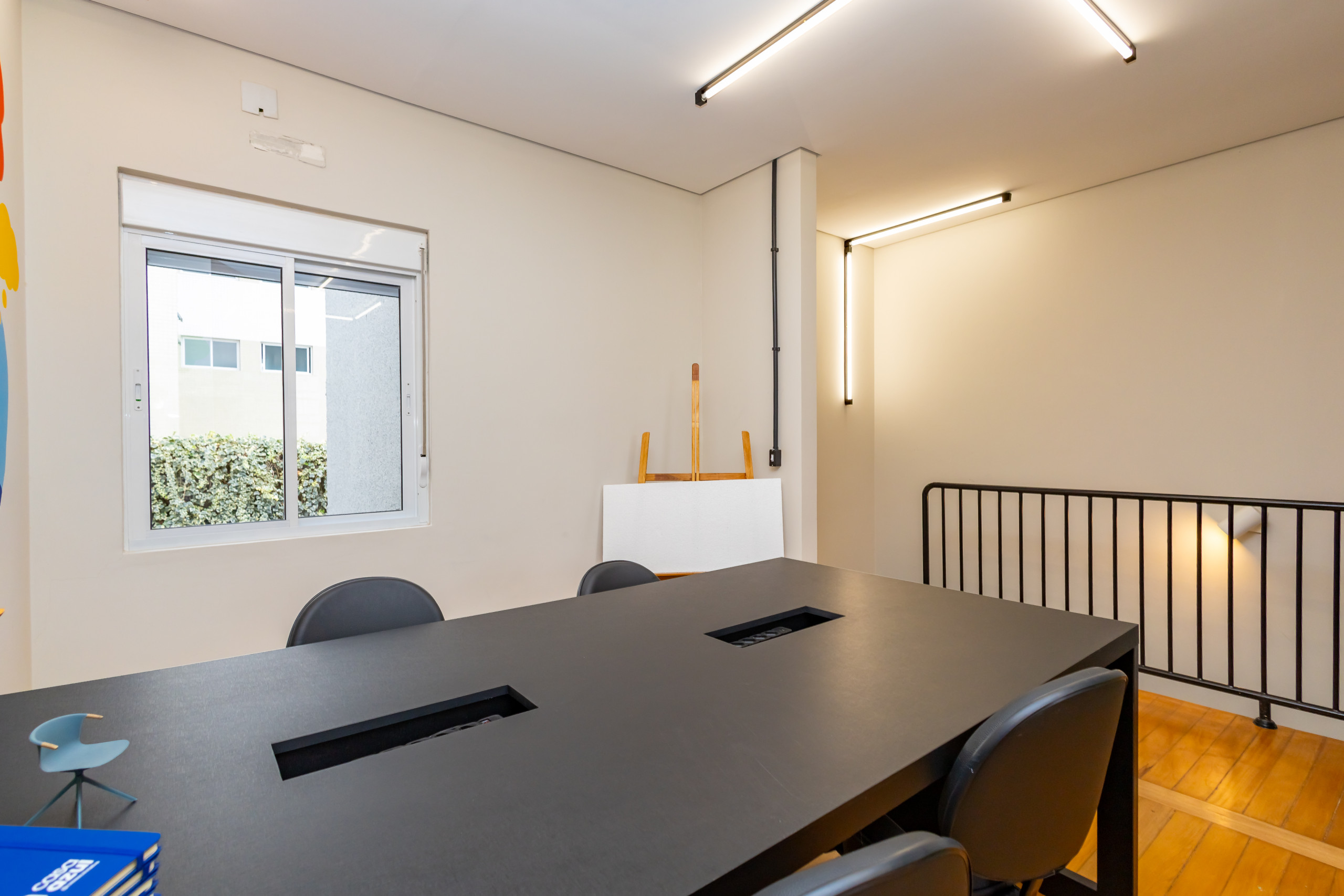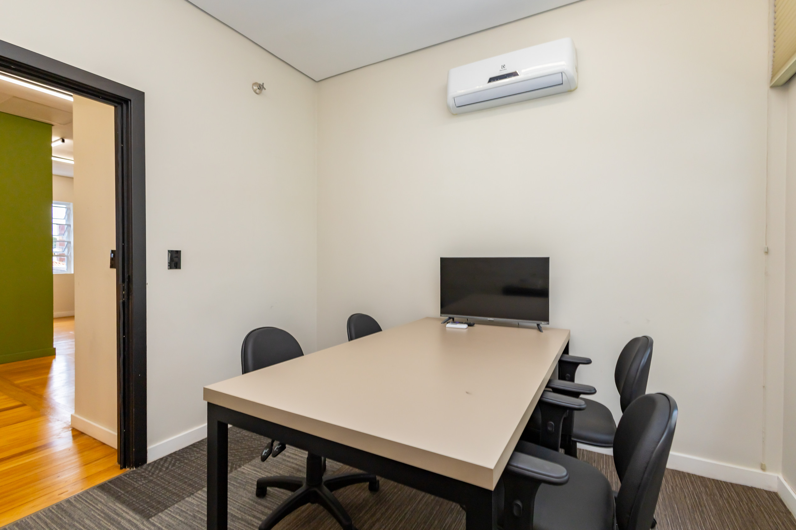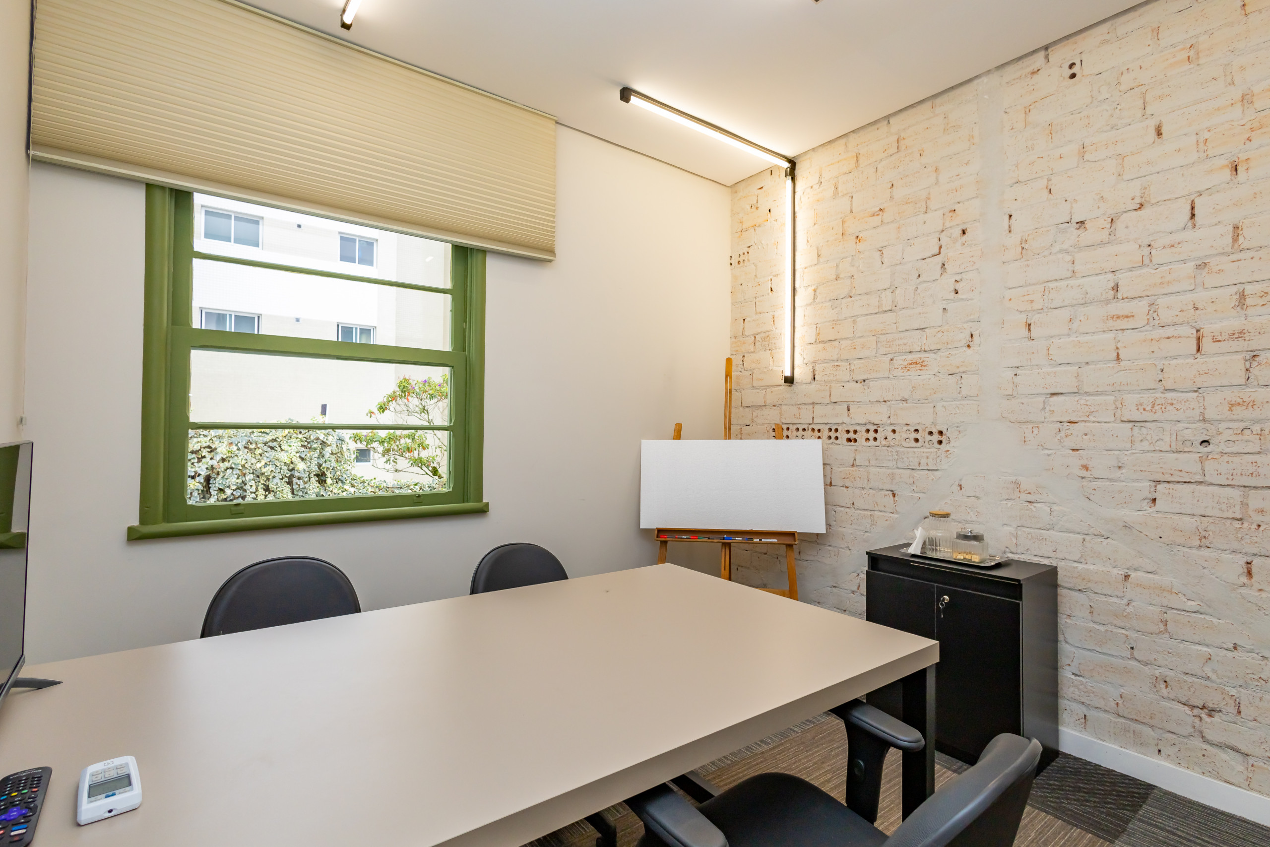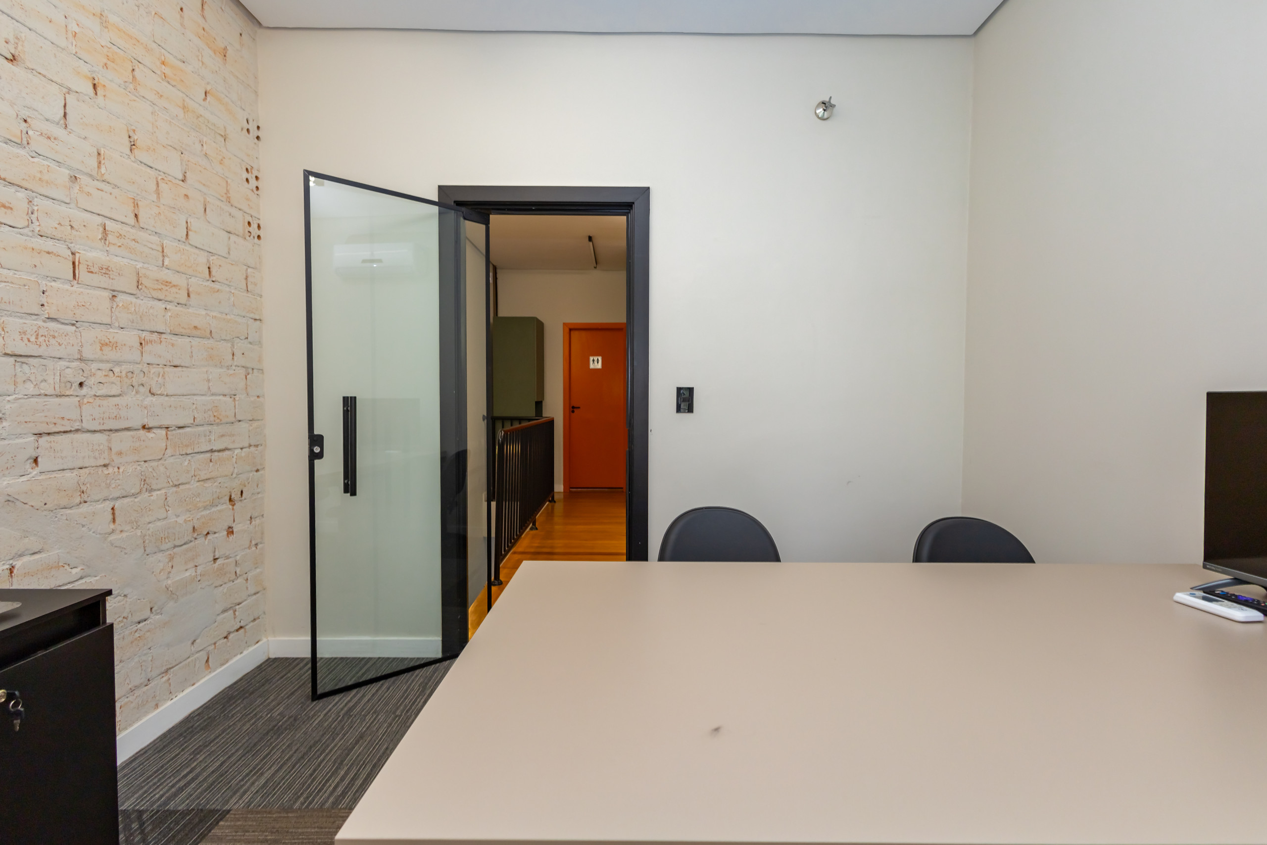 São duas salas integradas, mobiliadas para uso de escritório, com 3 bancadas grandes, armários, prateleiras e cadeiras ergonômicas de acordo com a NBR. São 14 estações de trabalho de integrado, estilo coworking. Tem também uma sala de reunião separada, com tv, com mesa para 4 pessoas e armários. Ambientes climatizados, frigobar, filtro de água gelada e cafeteira de cápsula. Banheiro unissex e acesso por escada. Tudo reformado, novo sem uso e internet incluso.