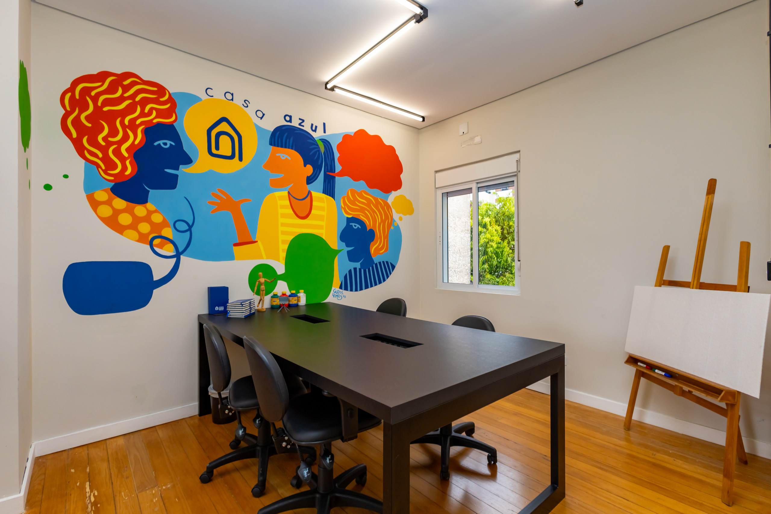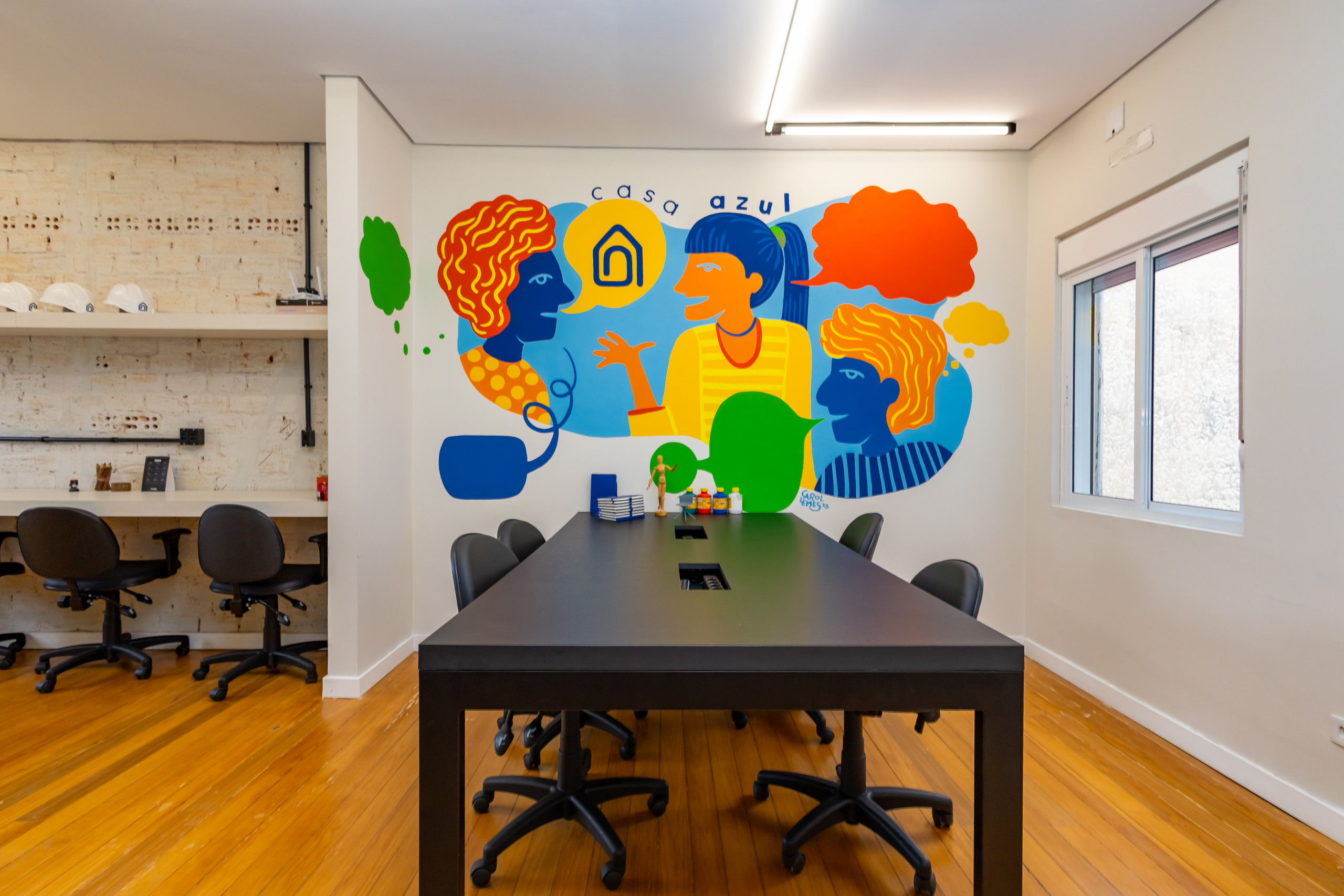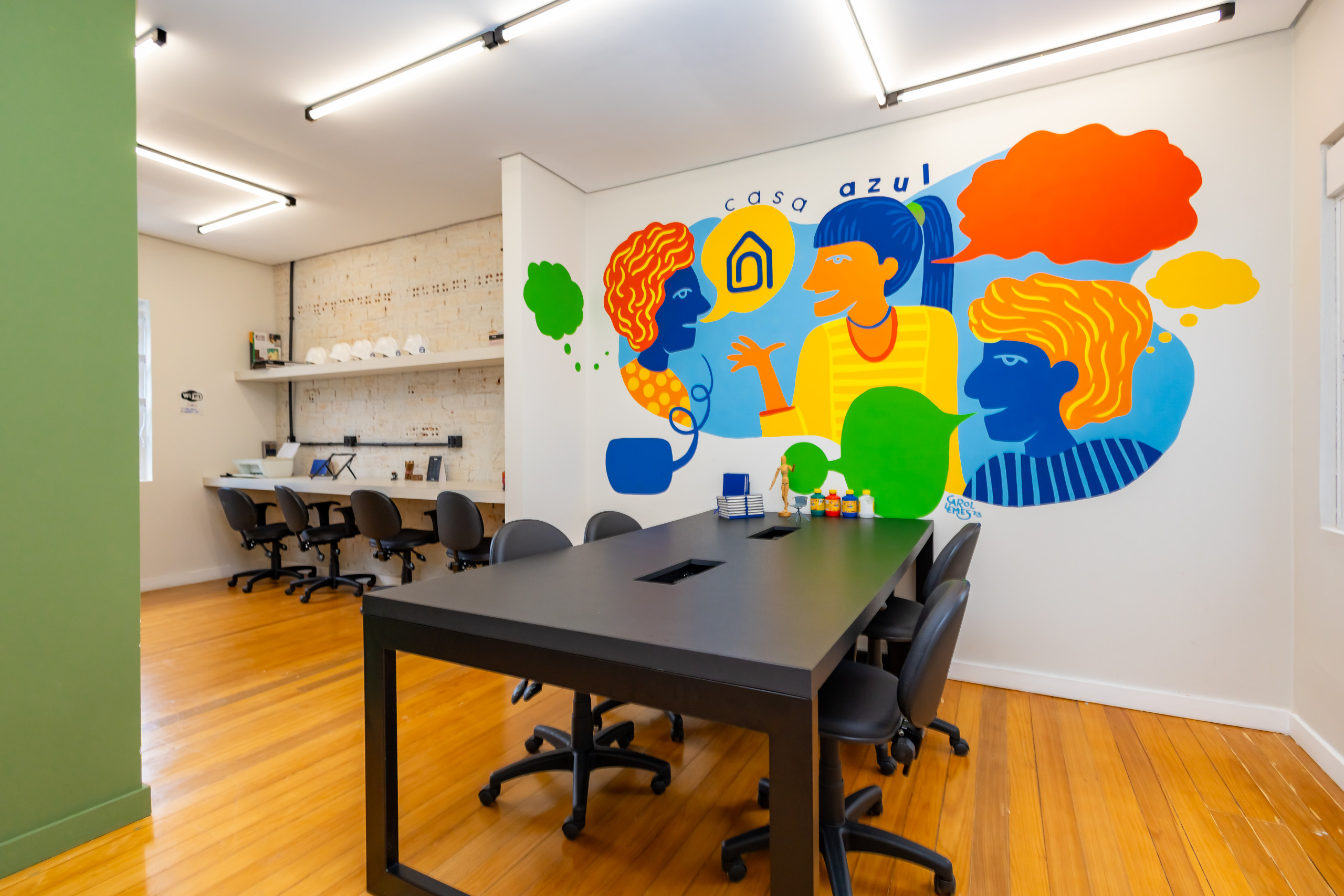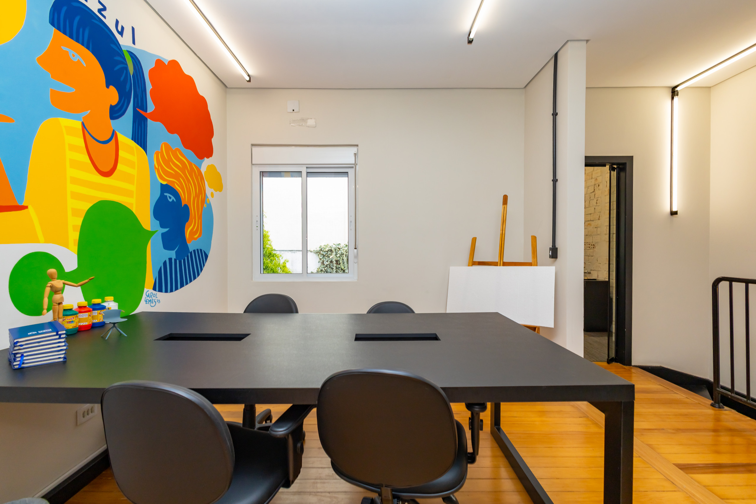 São duas salas integradas, mobiliadas para uso de escritório, com 3 bancadas grandes, armários, prateleiras e cadeiras ergonômicas de acordo com a NBR. São 14 estações de trabalho de integrado, estilo coworking. Tem também uma sala de reunião separada, com tv, com mesa para 4 pessoas e armários. Ambientes climatizados, frigobar, filtro de água gelada e cafeteira de cápsula. Banheiro unissex e acesso por escada. Tudo reformado, novo sem uso e internet incluso.
