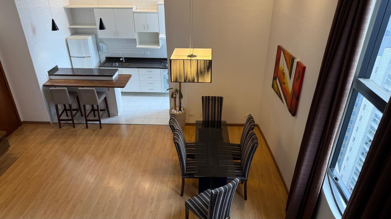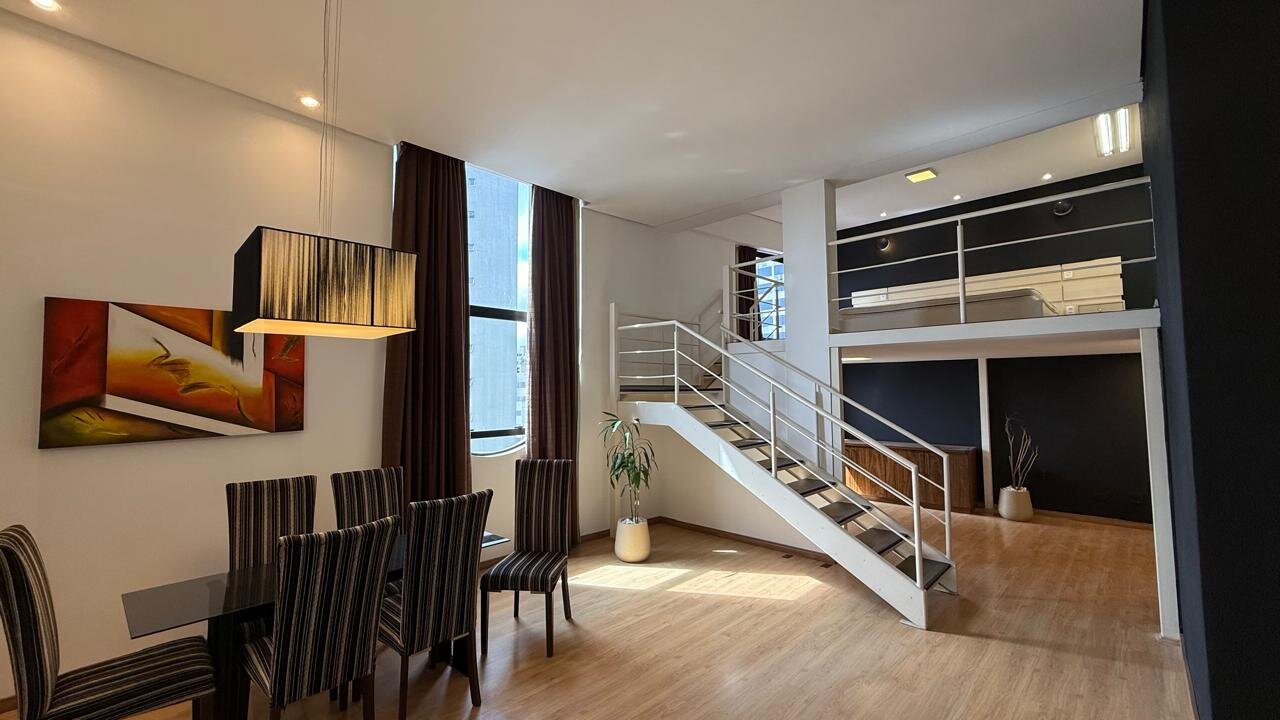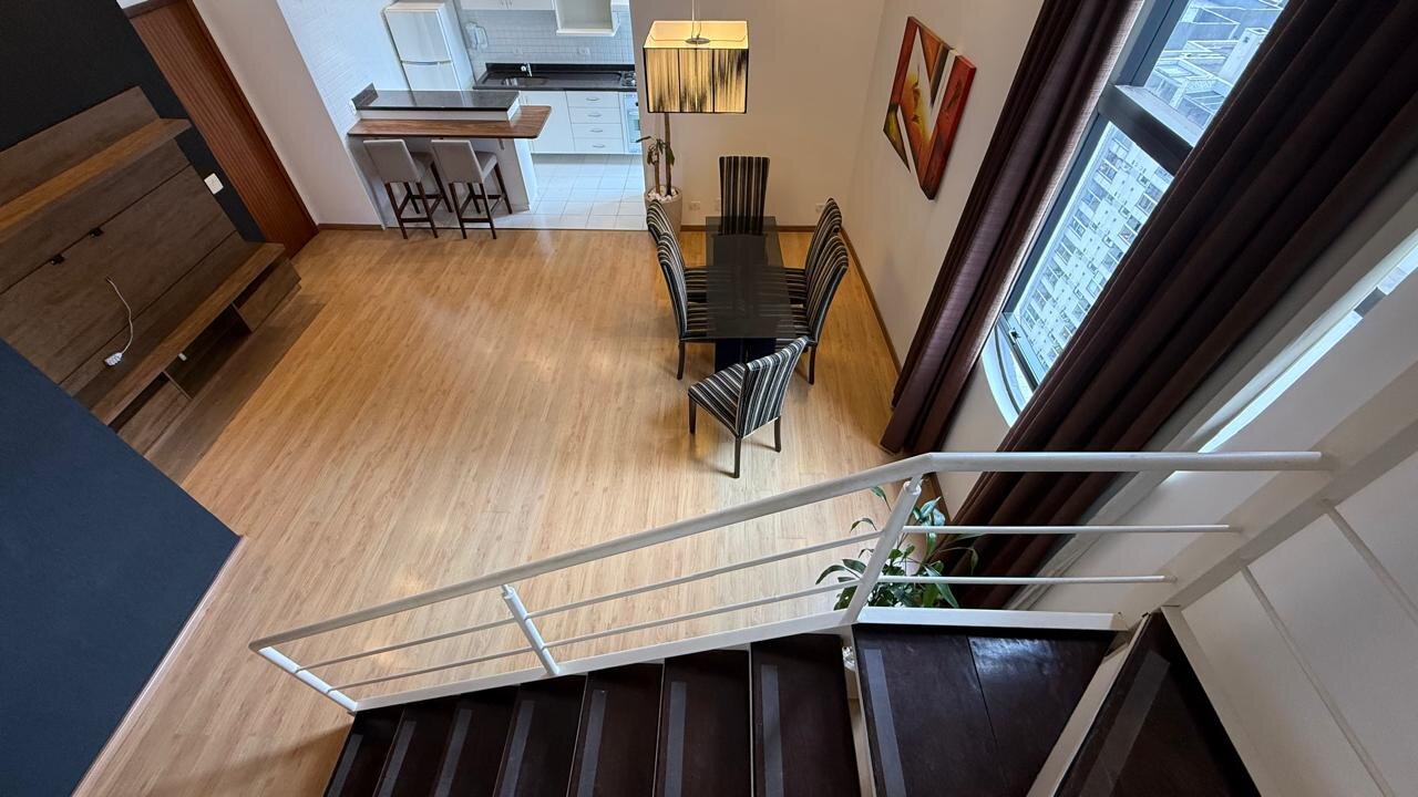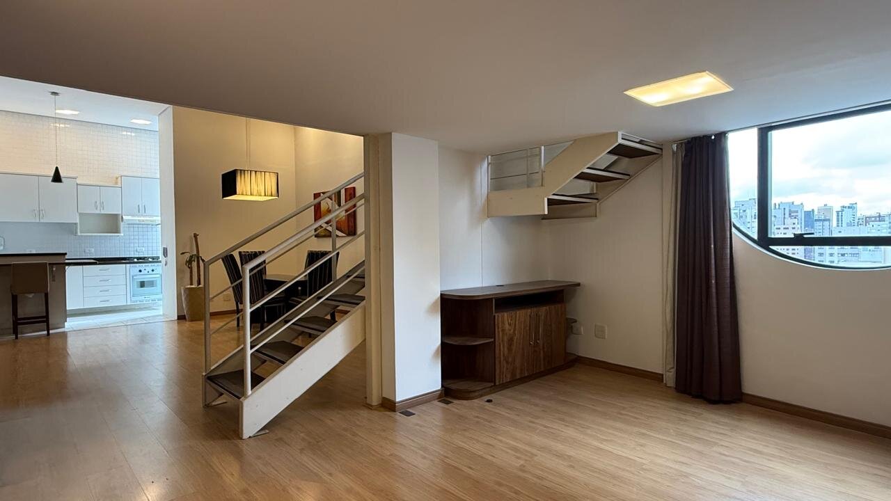 Apresento este incrível loft duplex de 65m², com pé-direito duplo, totalmente mobiliado e pronto para morar, no coração do Bigorrilho, um dos bairros mais nobres da cidade.