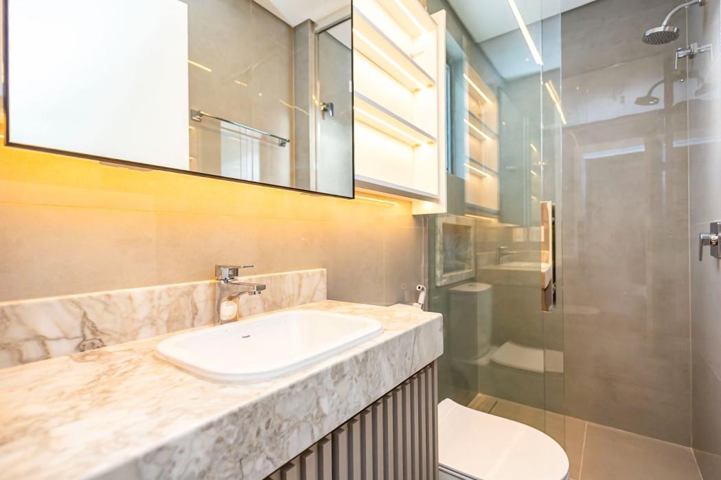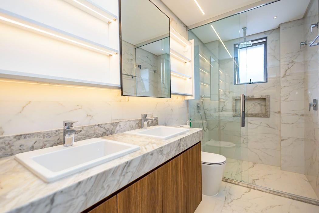 Os banheiros contam com piso aquecido, box do chao ao teto, pedras naturais de altíssima qualidade... acabamento impecável.