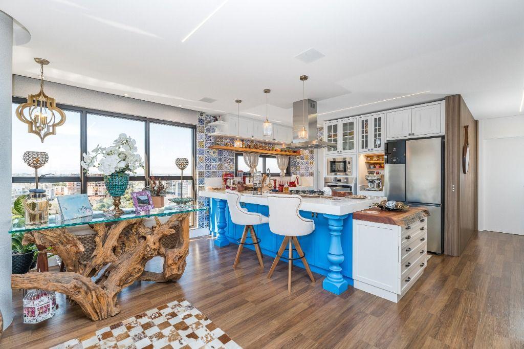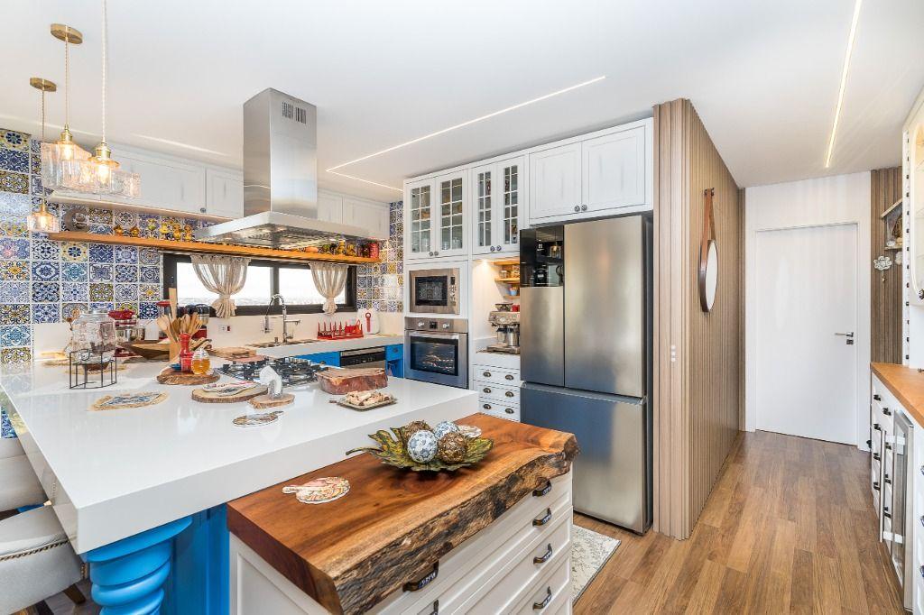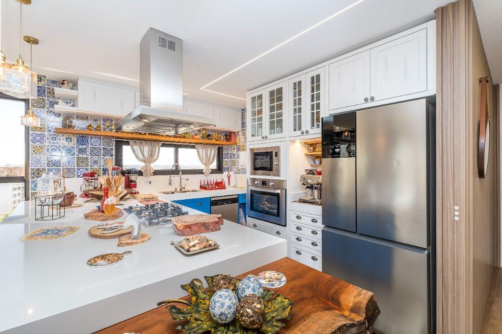 -A maravilhosa cozinha com armários todos planejados, e conta com os seguintes eletrodomésticos., Cook Top, Forno, Micro-ondas, Coifa da marca Eletromec, refrigerador, lava louças, Purificador de água, Triturador de Alimentos, tudo de alto padrão e muito bom gosto.