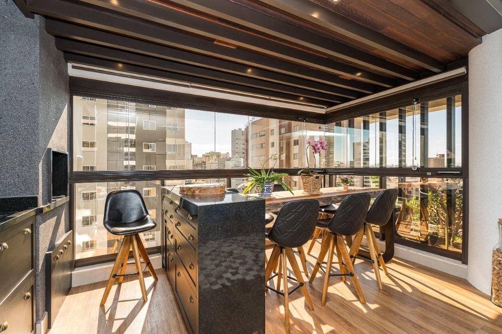 -Sacada fechada com Reiki e churrasqueira à carvão.