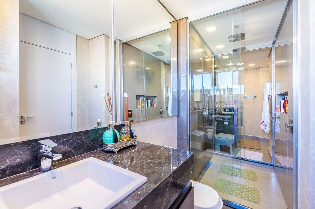 -01 Suíte Master com amplo closet, com  armários planejados, piso aquecido, toalheiro aquecido, simplesmente um Show de bom gosto.