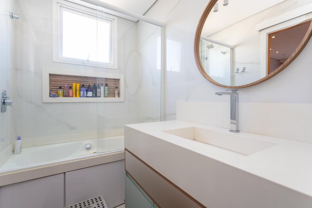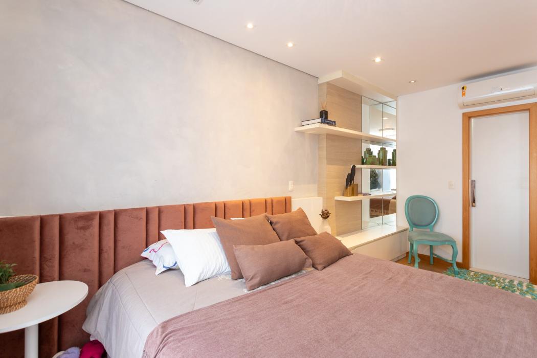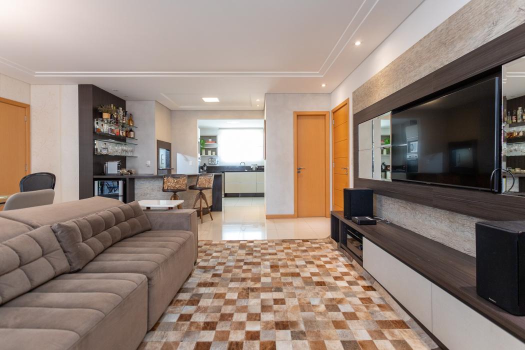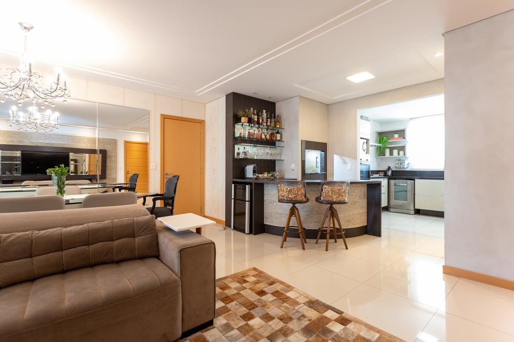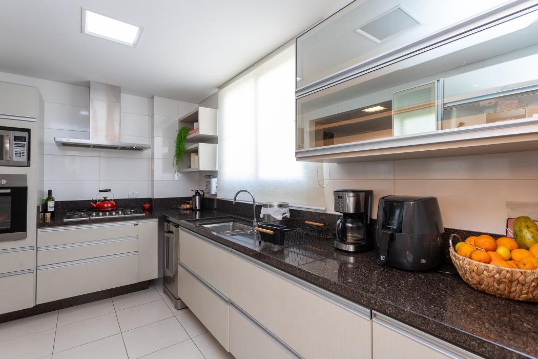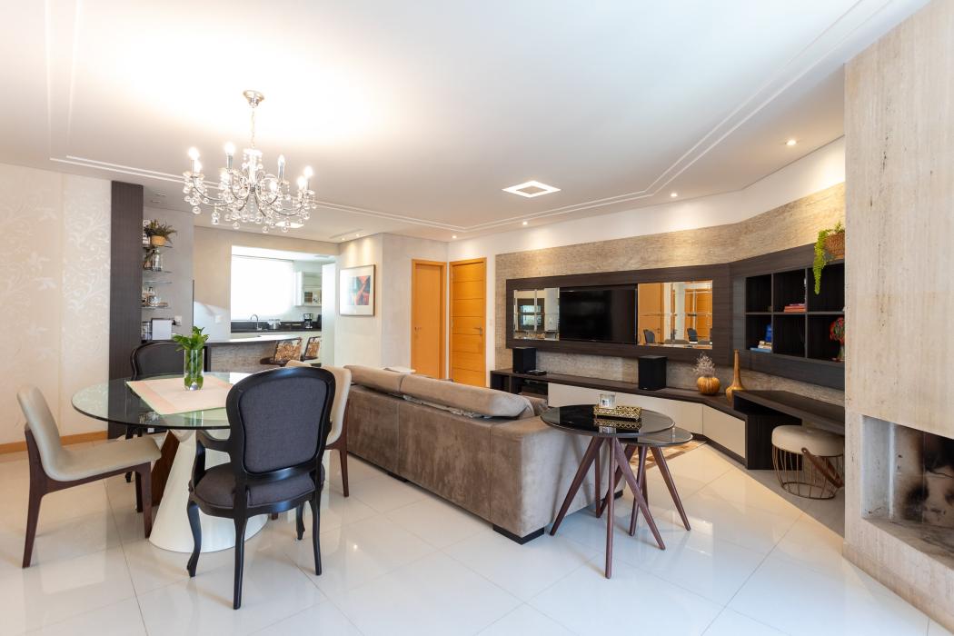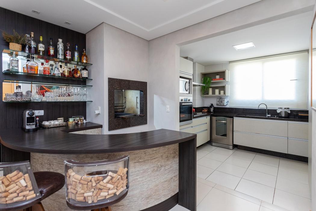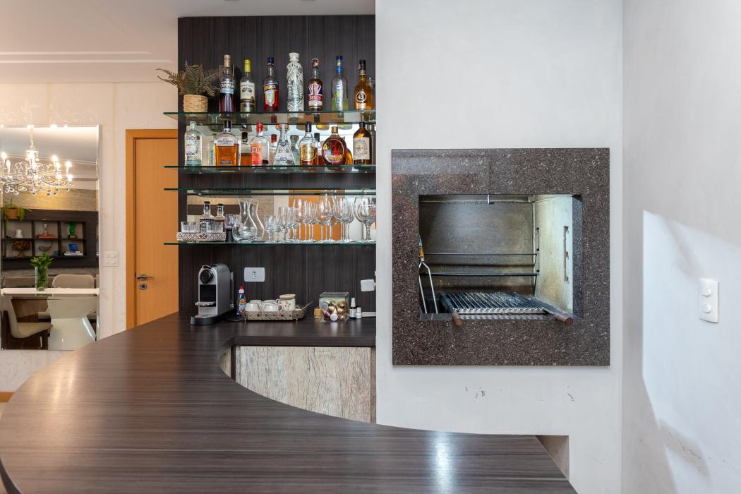 São 143 m² privativos, distribuídos em um ambiente pensado para bem-estar: duas salas integradas, lareira acolhedora, cozinha ampla unida a uma churrasqueira a carvão tudo em perfeita sintonia para receber família e amigos.