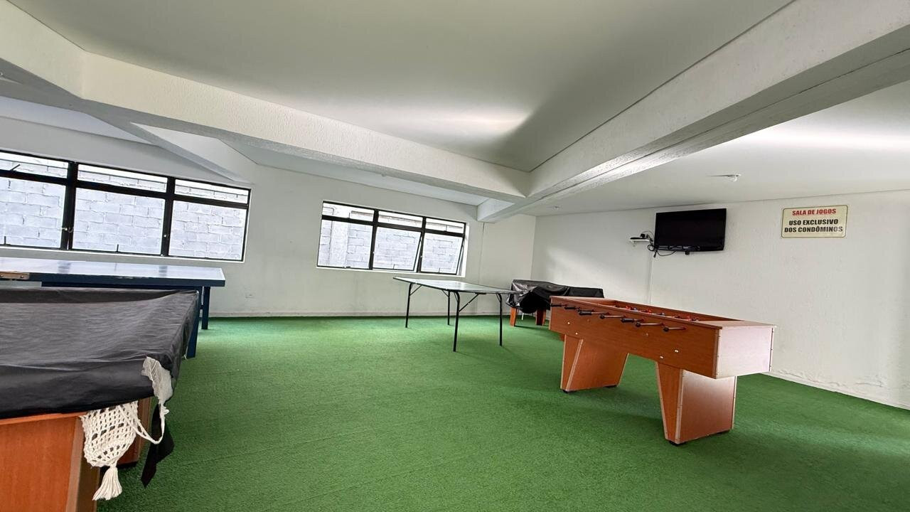 Brinquedoteca, Ginásio de esportes, churrasqueira condominial, espaço gourmet, quadra esportiva, academia mais SALA AUXILIAR, salão de festas, salão de jogos, sauna, playground, paisaismo, portaria 24 horas, guarita, elevadores e circuito interno de TV.