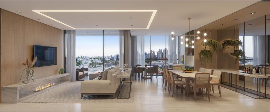 Apartamento novo com 3 suítes, ampla sala para 3 ambientes integrada a cozinha e a churrasqueira, sacada, lavabo, área e bwc de serviço. 2 vagas de garagem 74/75. Apartamento de frente, face Oeste. Excelente padrão com : Infra estrutura completa para ar condicionado nas dormitórios e sala, forro em gesso drywall, guilhotina na porta social dos apartamentos pra melhorar o desempenho acústico, parede de divisas com alto desempenho acústico, pintura epóxi dos pisos das garagens, porcelanato 90x90 na área social dos apartamentos, churrasqueira à carvão, metais monocomando nos BWCs dos apartamentos, sistema de segurança - CFTV do condomínio entregue instalado, persianas integradas e automatizadas nos dormitórios, ralo linear na área do box dos bwc, nicho de mármore na Suíte Master, infraestrutura para coifa,
