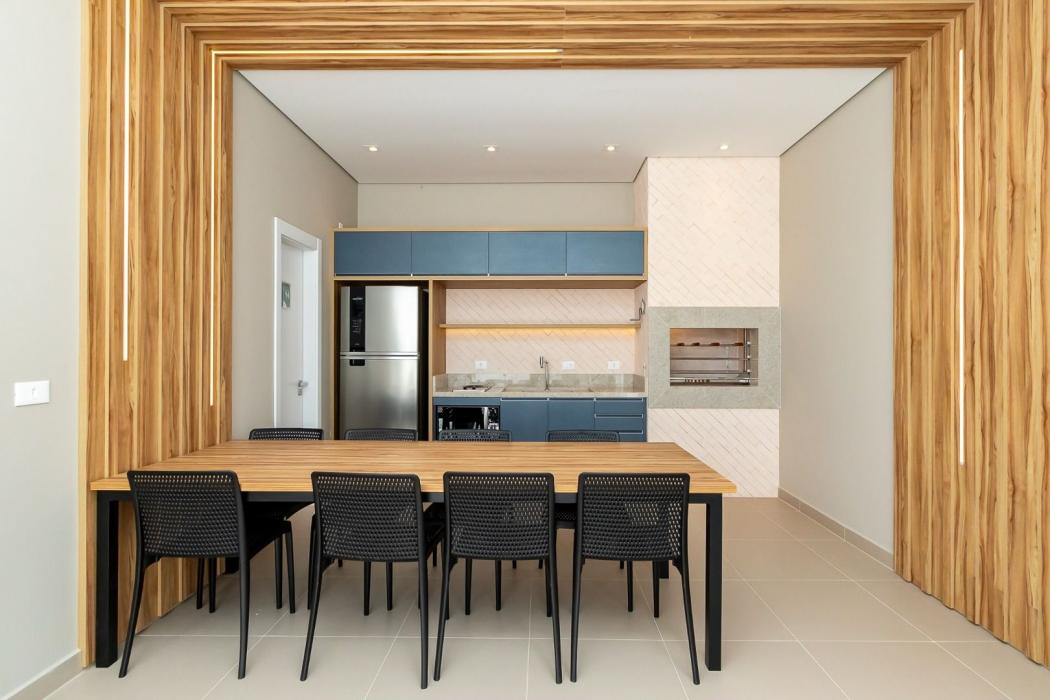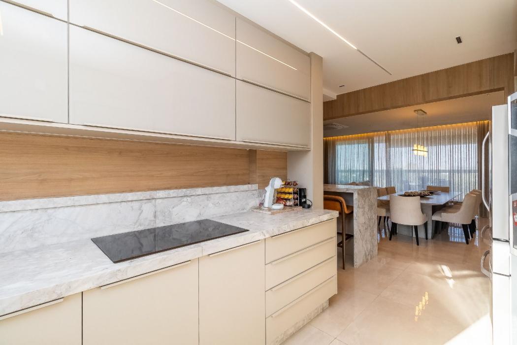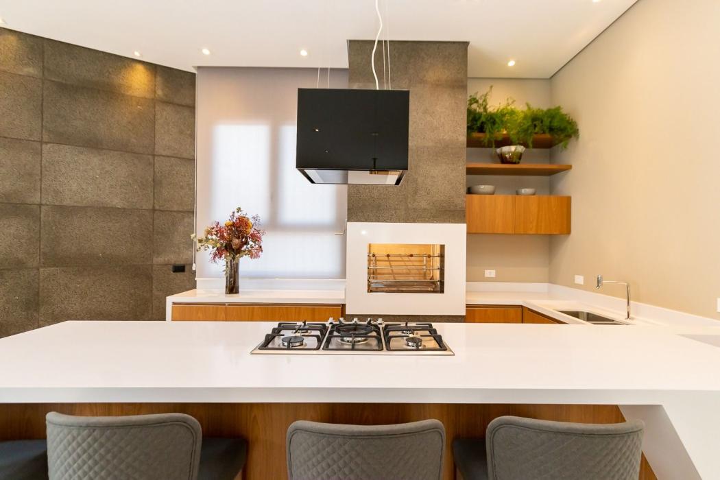 Cozinha integrada totalmente equipada, prática e funcional