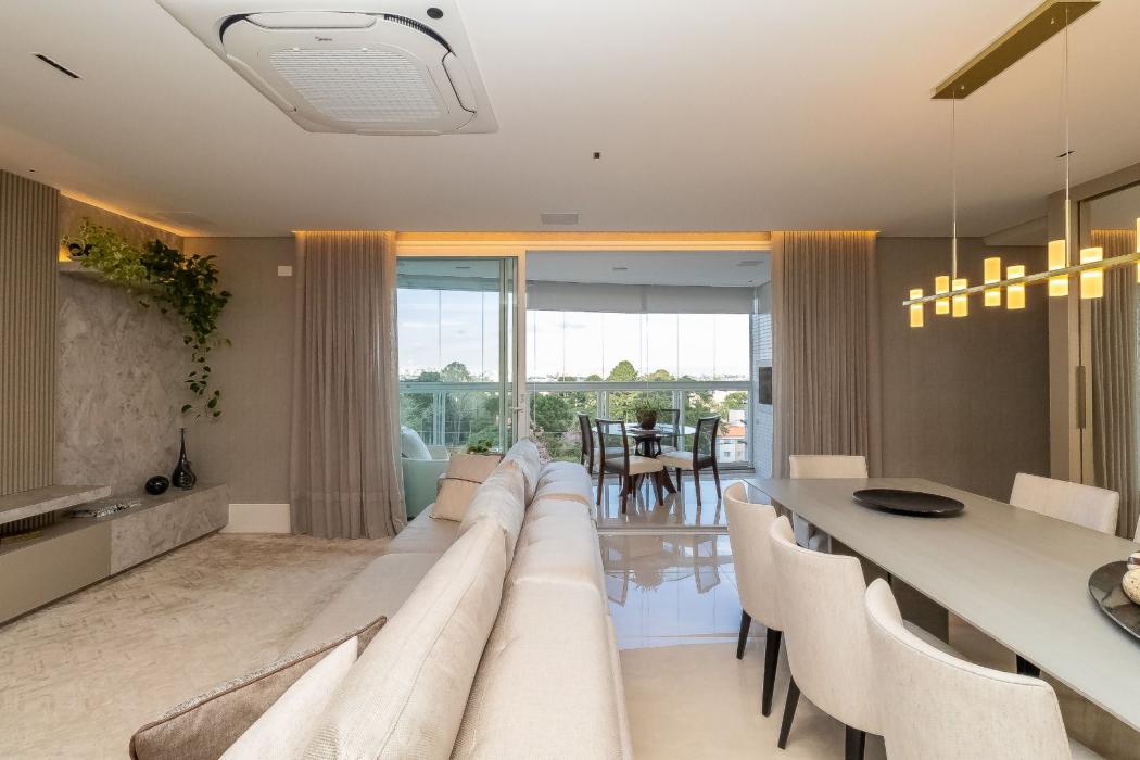apartamento com 3 suítes, banheiros com piso aquecido, apartamento com sala ampla, sala com dois ambientes, apartamento em condomínio clube, apartamento com varanda ampla, varanda com churrasqueira, vista privilegiada, cozinha integrada, apartamento com 3 vagas de garagem, iluminação natural, Mossungue, Ecoville, Parque Barigui, supermercados