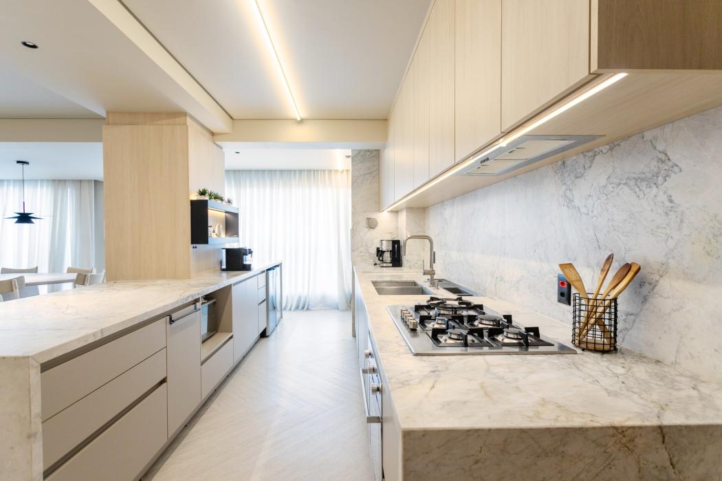 São 171m² de área privativa de um imóvel finamente mobiliado e decorado, distribuídos em 3 suítes, amplo living com ambientes integrados e iluminação natural, varanda gourmet com churrasqueira e vista panorâmica, cozinha planejada, acabamentos sofisticados, revestimentos nobres, projeto iluminotécnico, piso aquecido, esquadrias diferenciadas, ar condicionado em todos os ambientes. 3 vagas de garagem.