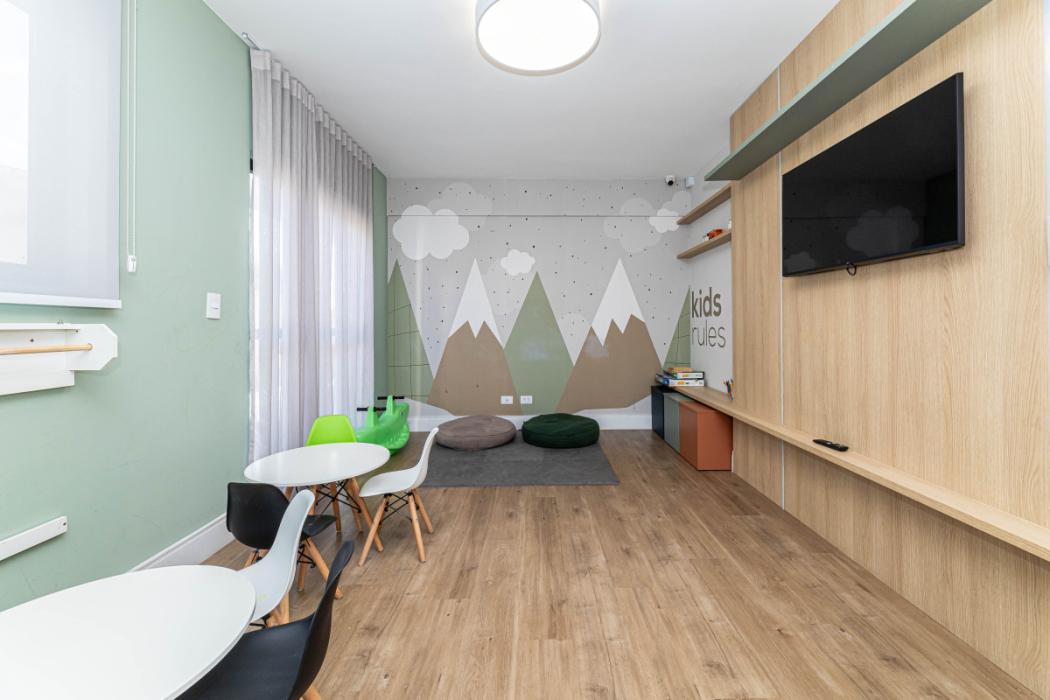 Edifício: Residencial Pine. Portaria remota. 1 torre, 9 apartamentos por andar, 7 andares. Áreas de lazer: Salão de festas, espaço fogueira, espaço bar/gourmet, espaço pet coberto e descoberto, brinquedoteca coberto e descoberto, academia, rooftop com vista linda e duas salas gourmet com churrasqueira. Acessibilidade para cadeirantes. Central de delivery e sala de correspondência.