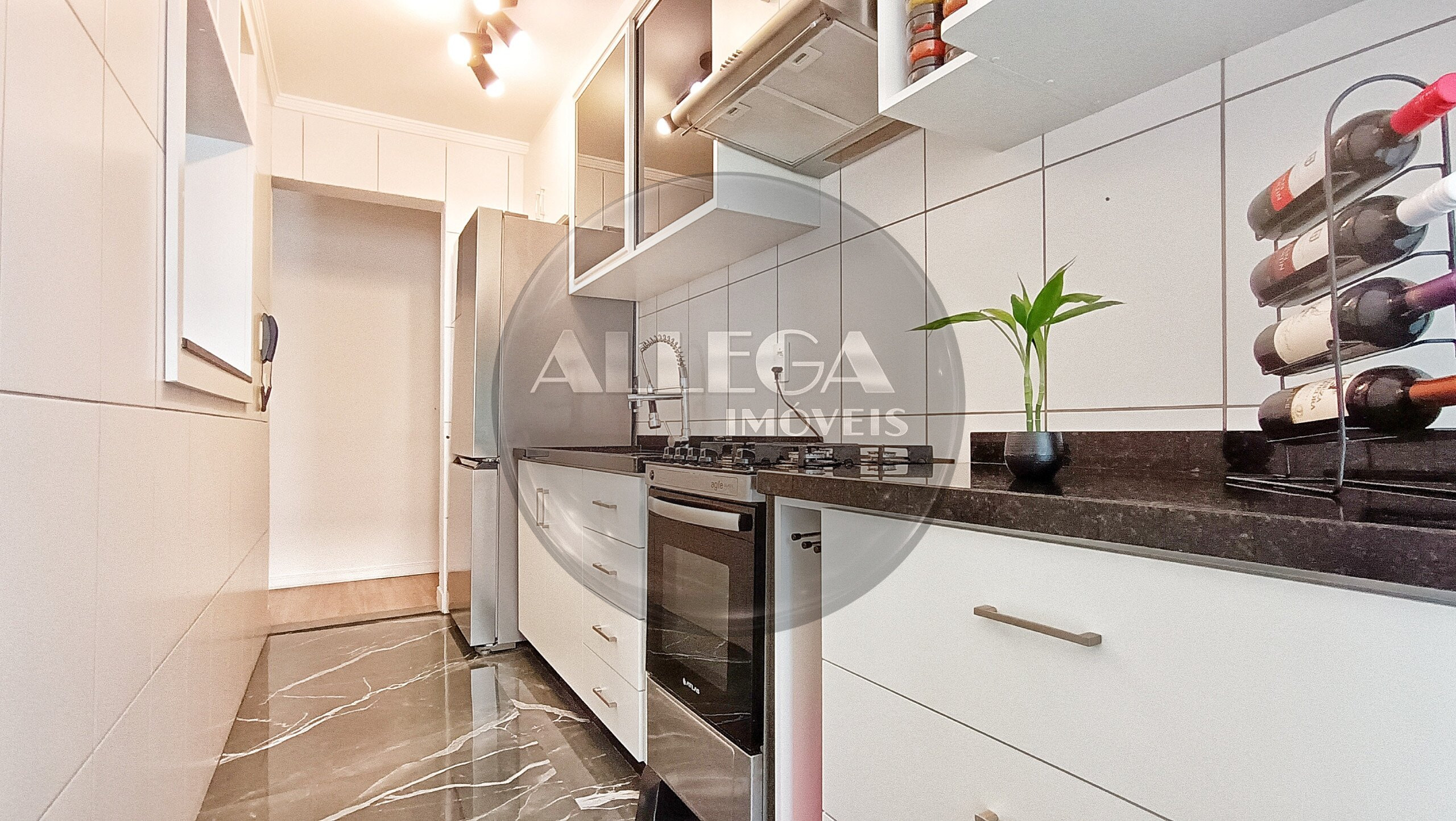O apartamento conta com móveis planejados em todos os ambientes, todos de excelente qualidade, robustos e com ótimo aproveitamento de espaço.O piso da cozinha é em porcelanato ao estilo de mármore e piso laminado na sala e dormitórios.