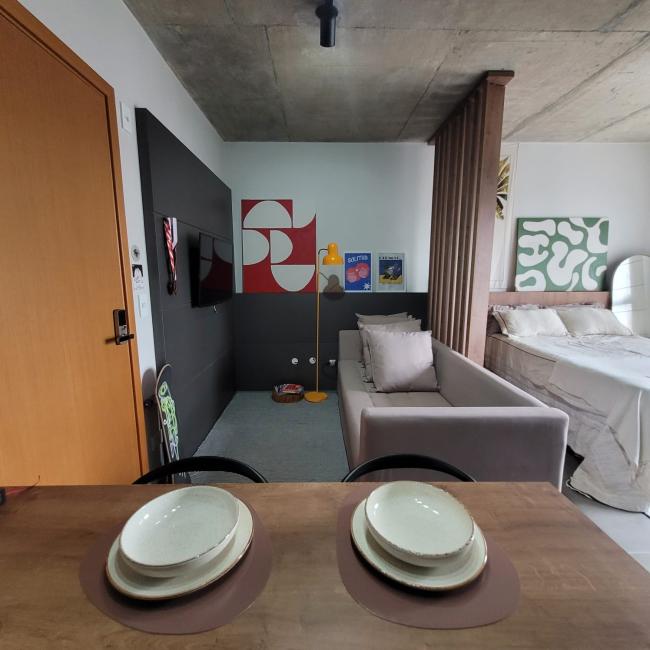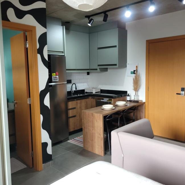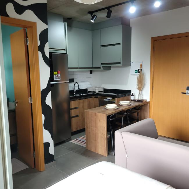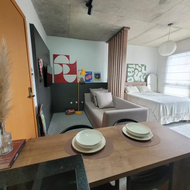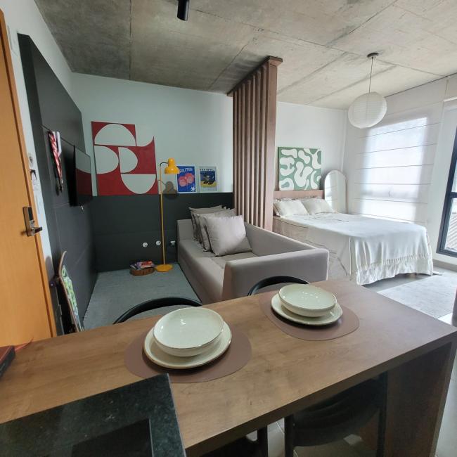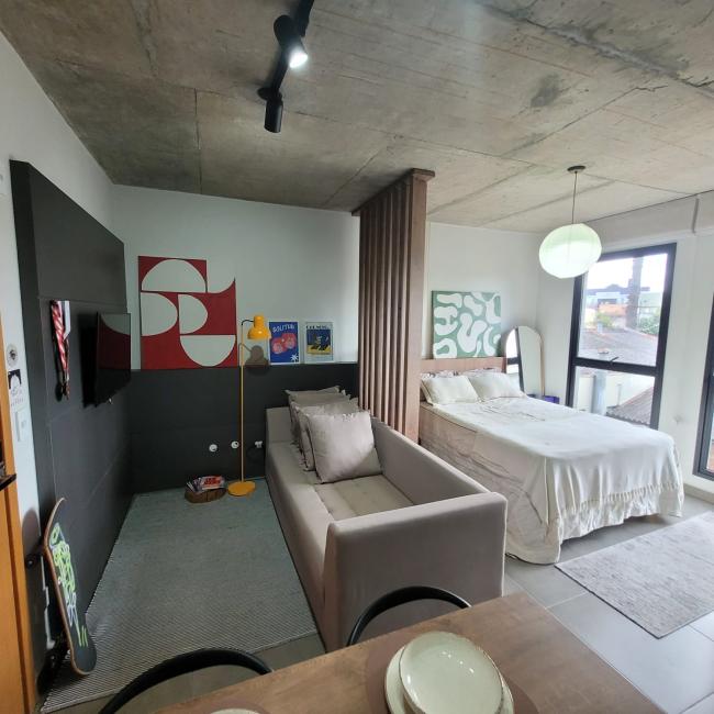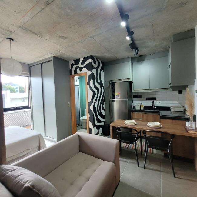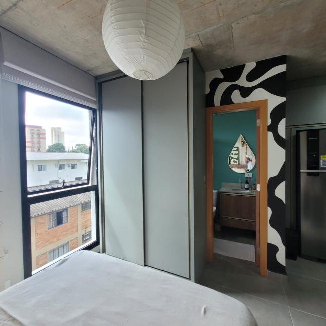 Studio mobiliado a venda em Curitiba Bairro São FrancisoResidencial Casa Trajano com muito conforto segurança e praticidade Imóvel com 25m² de área preivativa exclusiva Moveis planejados de alta qualidade que irão permancer no studio Banheiro social com revestimento cerâmico personalizado pelo muralista ventilação natural Piso em porcelanto Eliane em todos os ambientes Fechadura eletrônica Cozinha com bancada em mármore armarios novos Janelas amplas do piso ao teto muita claridade arejadoStudio bem localizado no terceiro andar face norte Condomínio novo com uma infraetrutura completa Academia Salão de festas Coworking Rooftop Lavanderia Omo Espaço Pet Bicicletário Portaria remota 24 horas zeladora guardião monitoramento por camêras Imóvel é perfeito para moradia ou investimento locação como Airbnb taxa de ocupação acima de 70%.Com localização privilegiada apenas 600 metros do Shopping Mueller Hospital das Clínicas Largo da Ordem Centro Cívico Passeio Publico Universidade federal no coração centro histórico CuritibaPermite fianciamento bancário uso fgts Agende sua visita venha conhecer