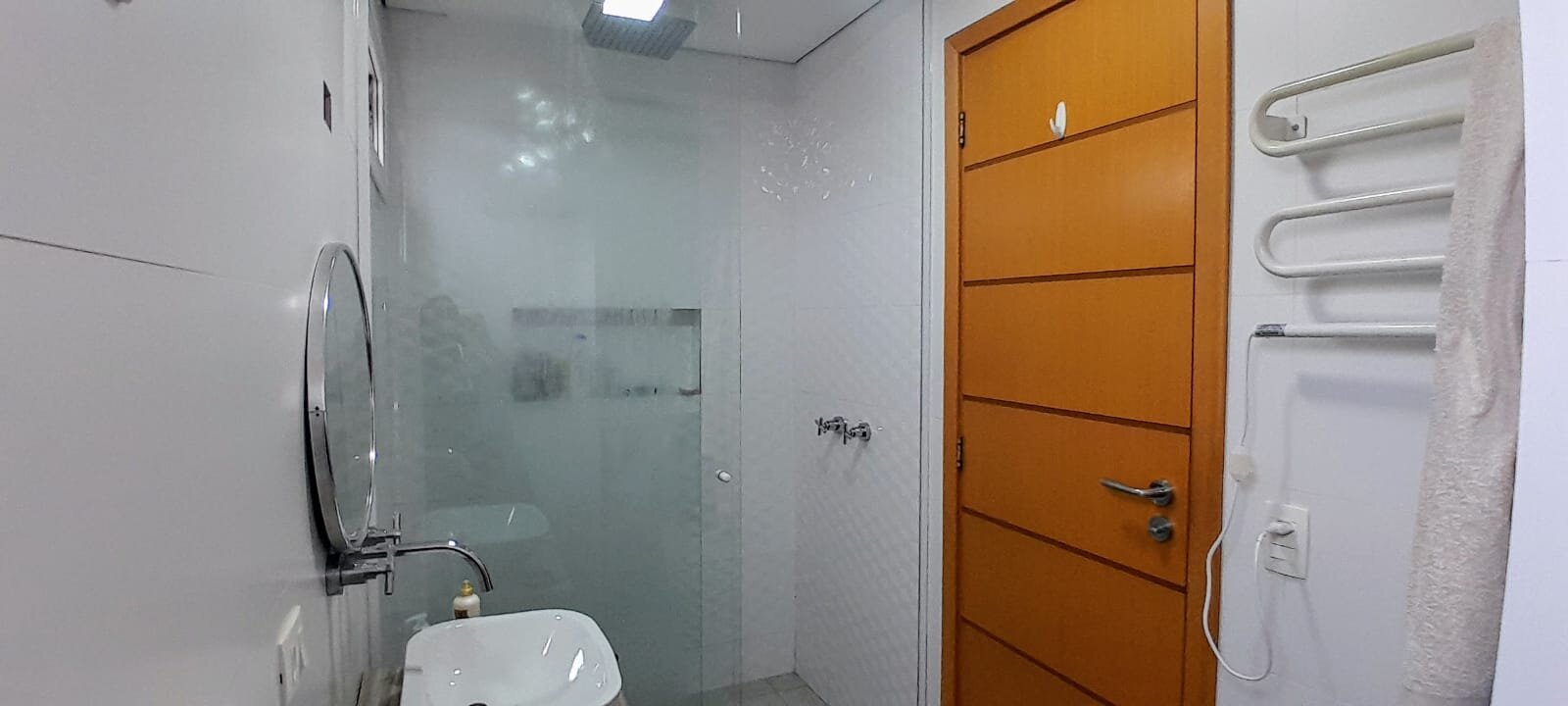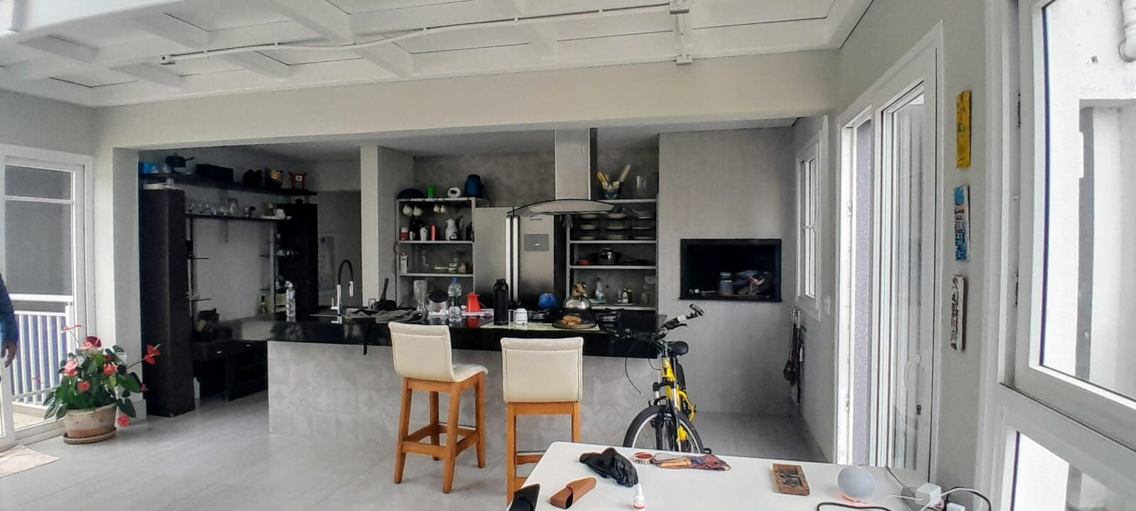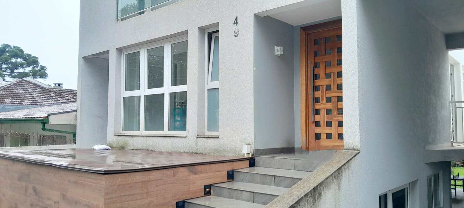 Conta ainda com garagem para cinco veículos, área de serviço completa, aquecimento a gás e padrão construtivo superior, com pisos Porto Bello e portas em madeira maciça.