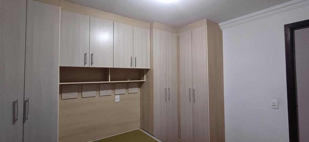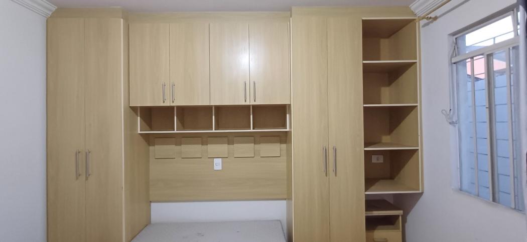 Um apartamento na parte de trás, completo, média de 60m2, e depósito na parte de baixo do apartamento.