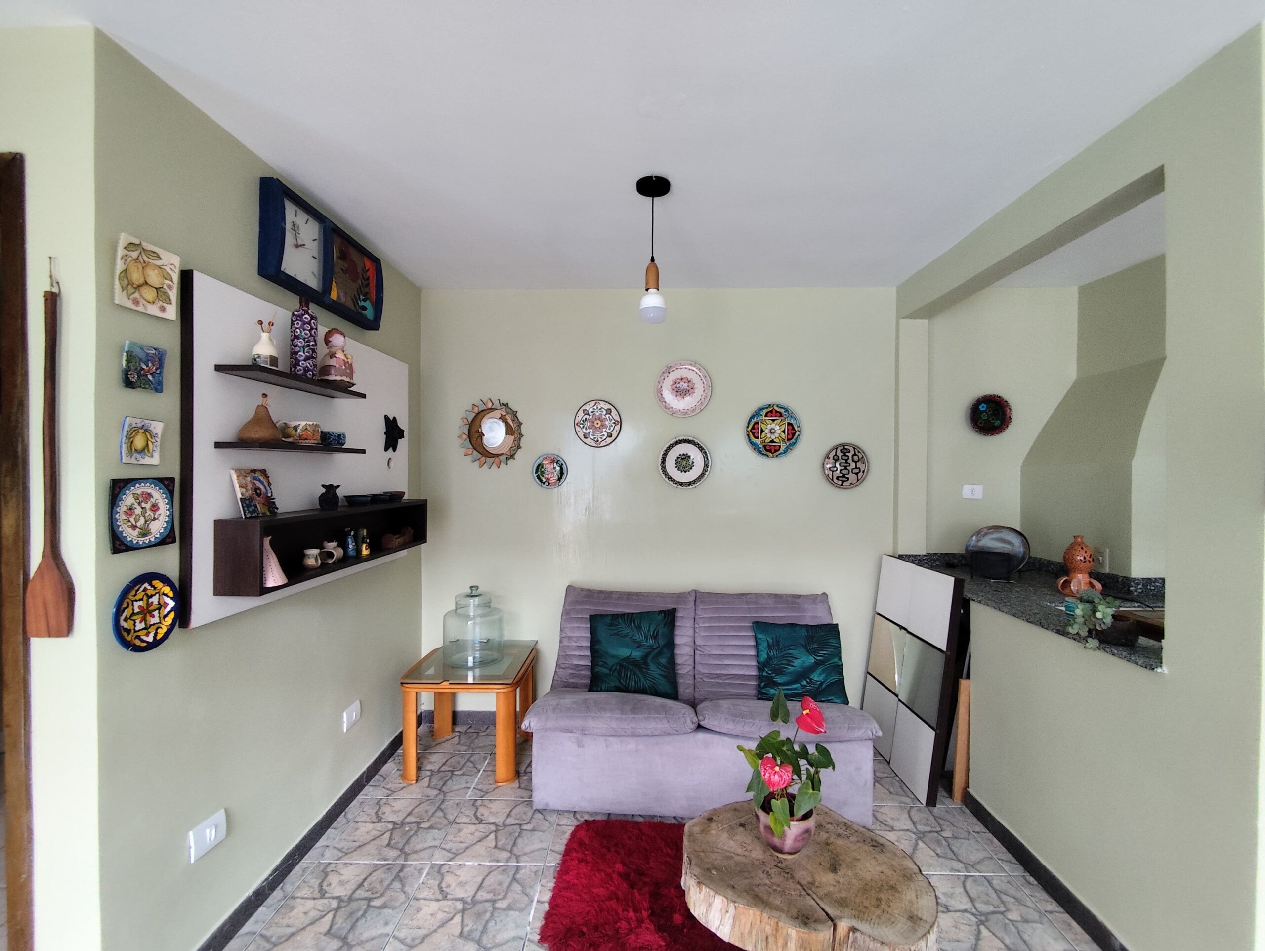 - SALA AMPLA PARA DOIS AMBIENTES, TETO COM ACABAMENTO EM GESSO E LUSTRE PENDENTE;