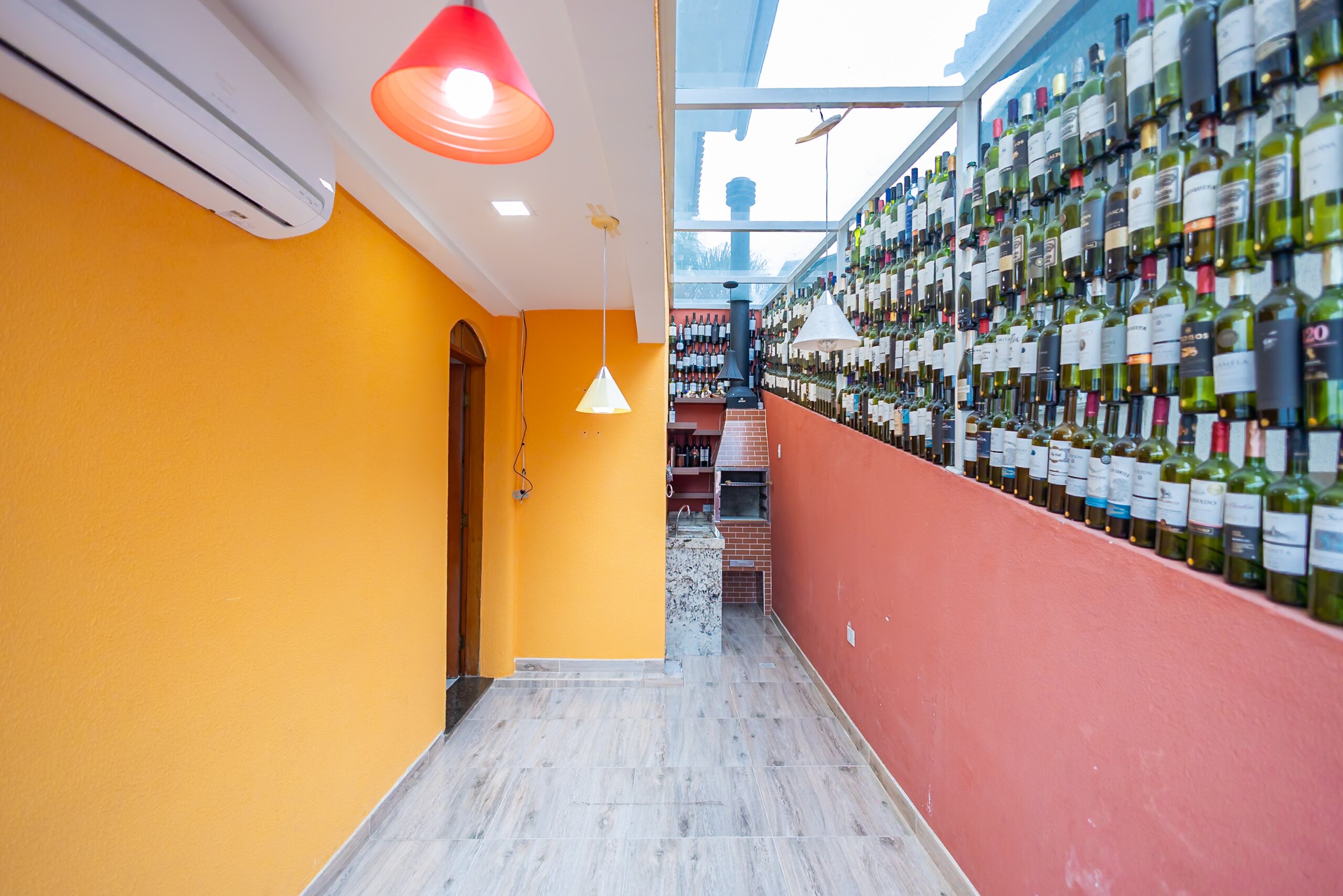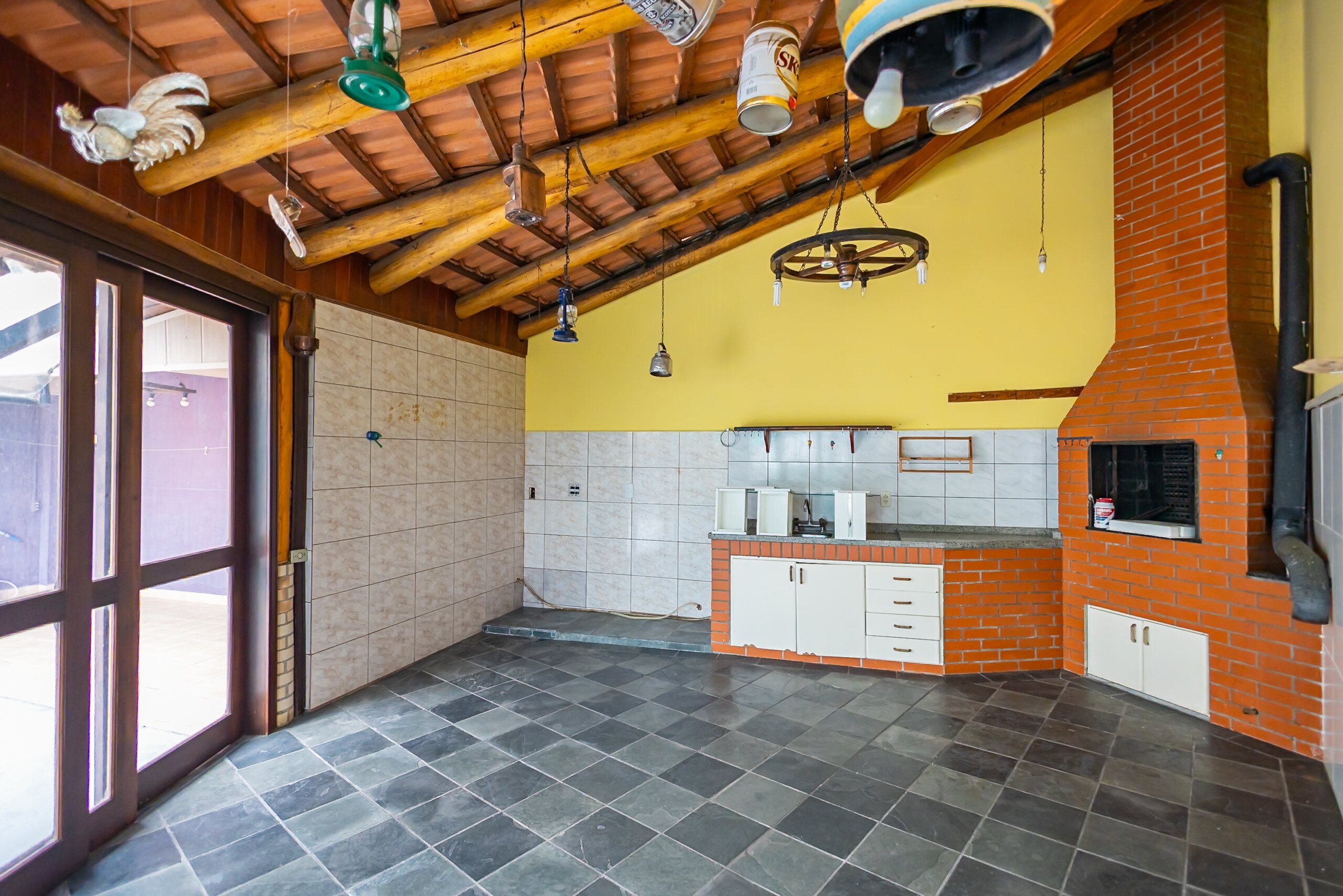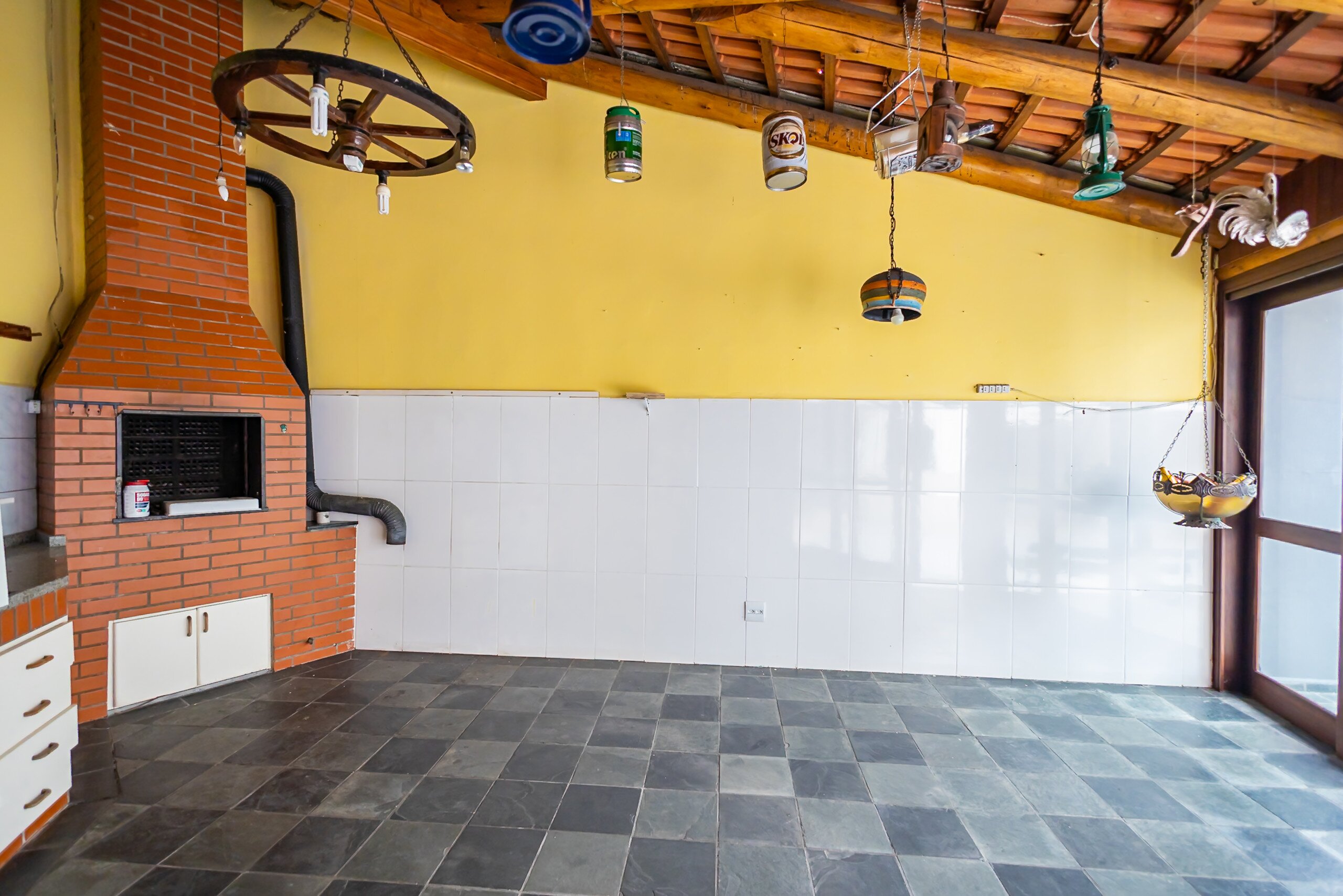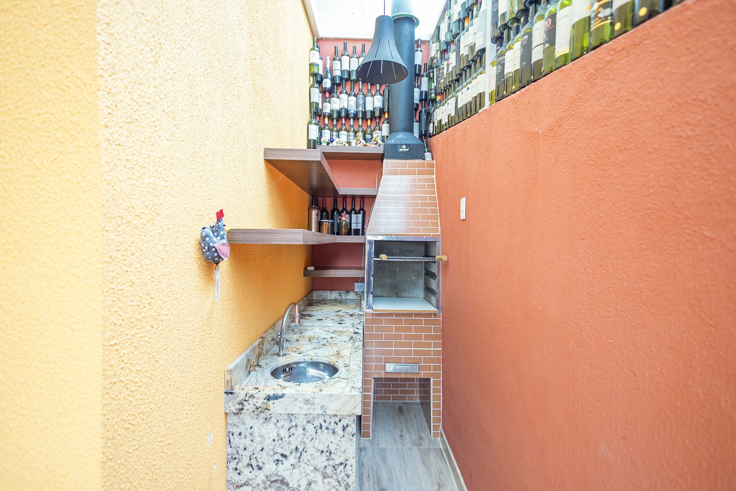 Lareira e espaço gourmet com churrasqueira, proporcionando conforto e lazer em todas as estações