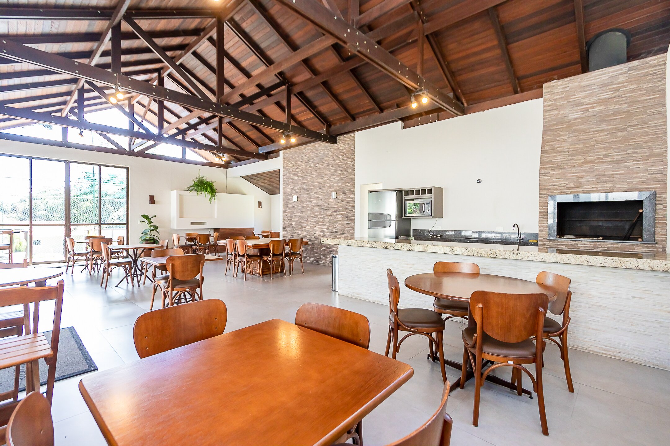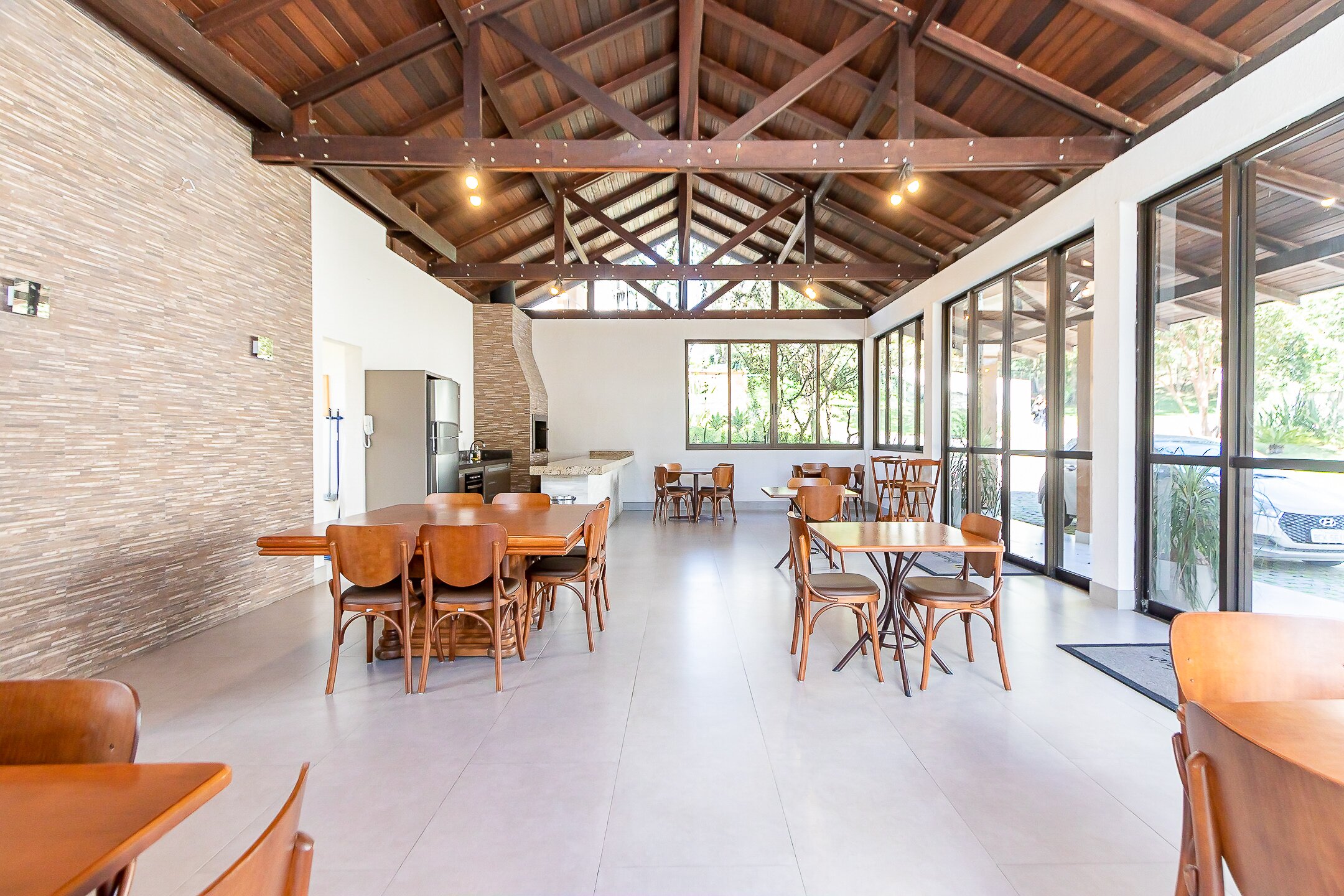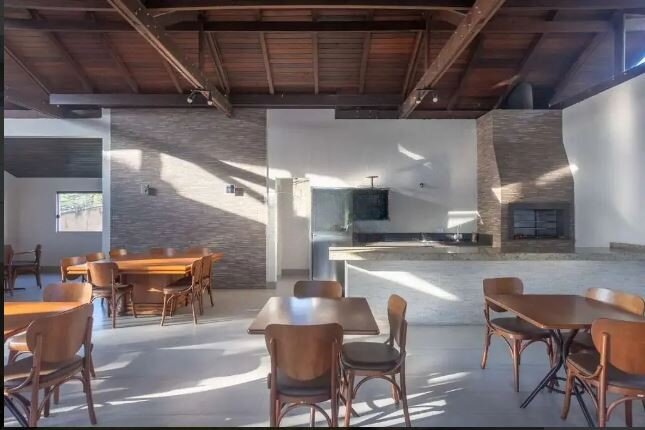 Salão de festas com churrasqueira
