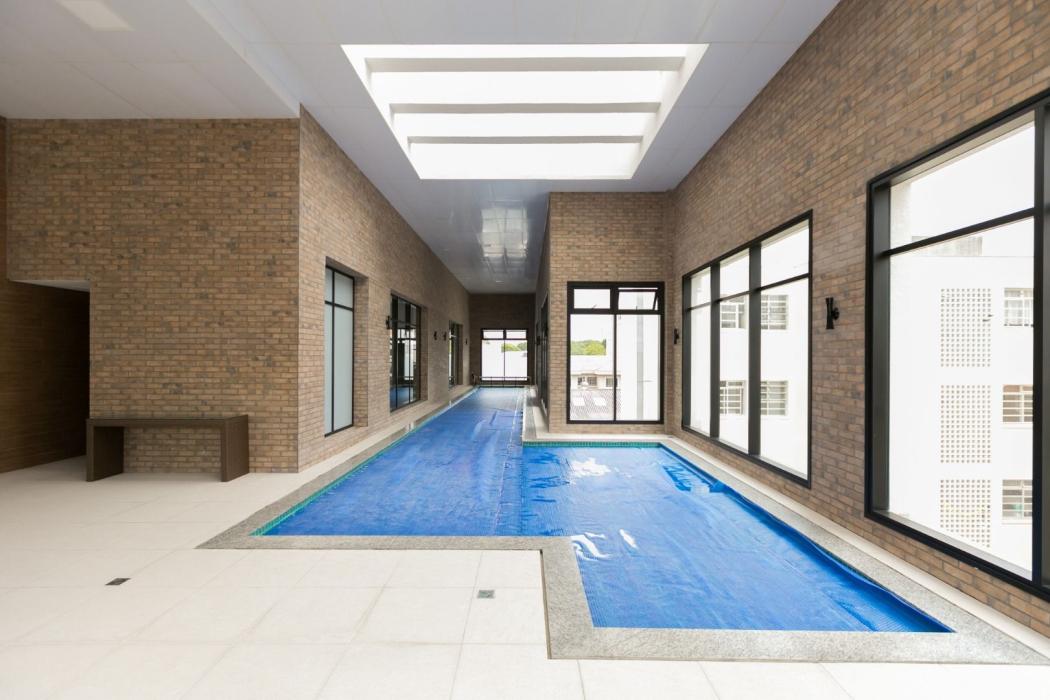 Piscina coberta com raia de 20m e solarium