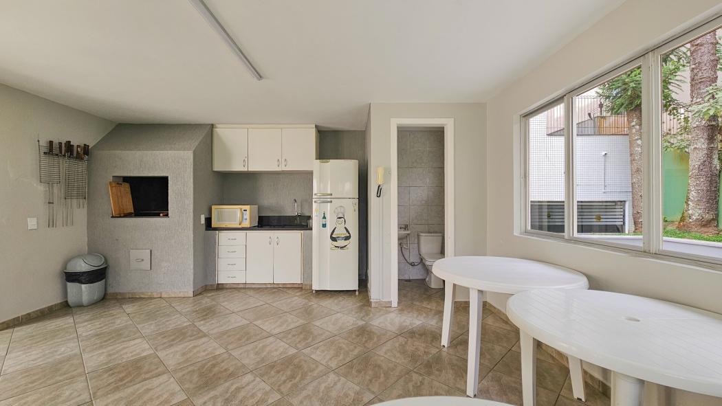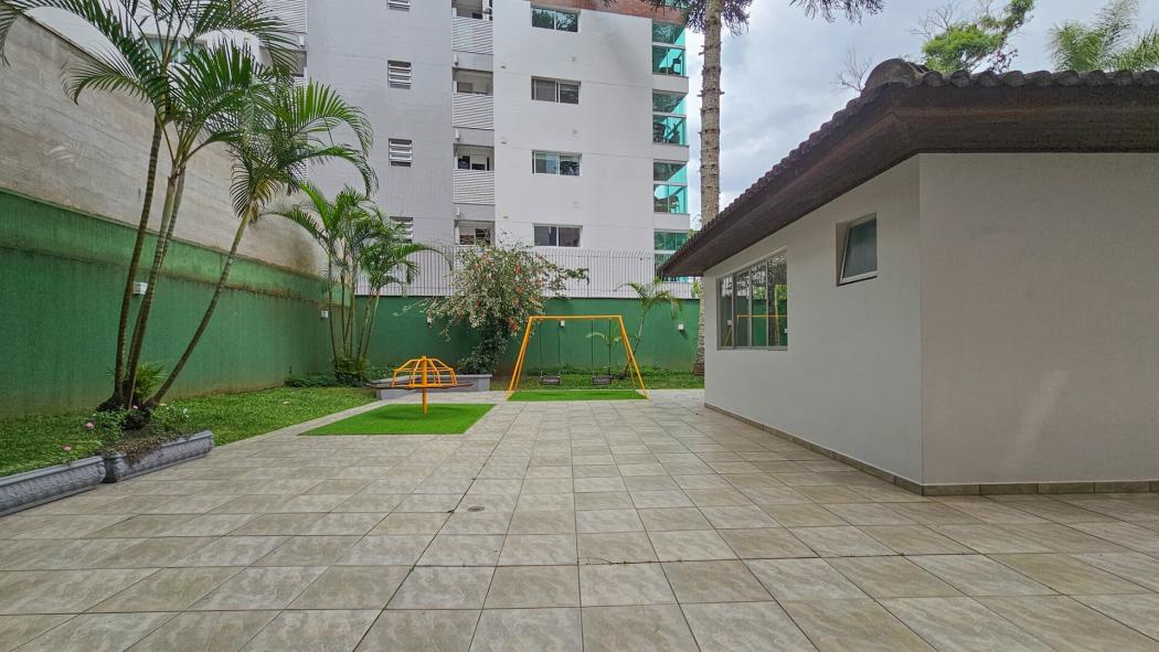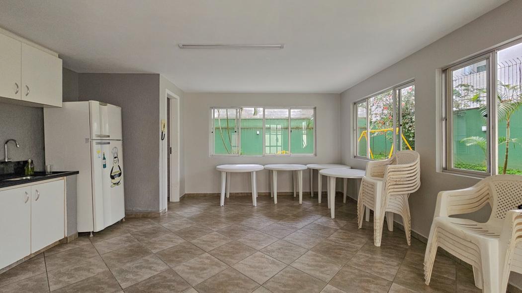 Condomínio com elevador, com salão de festas com churrasqueira e playground.