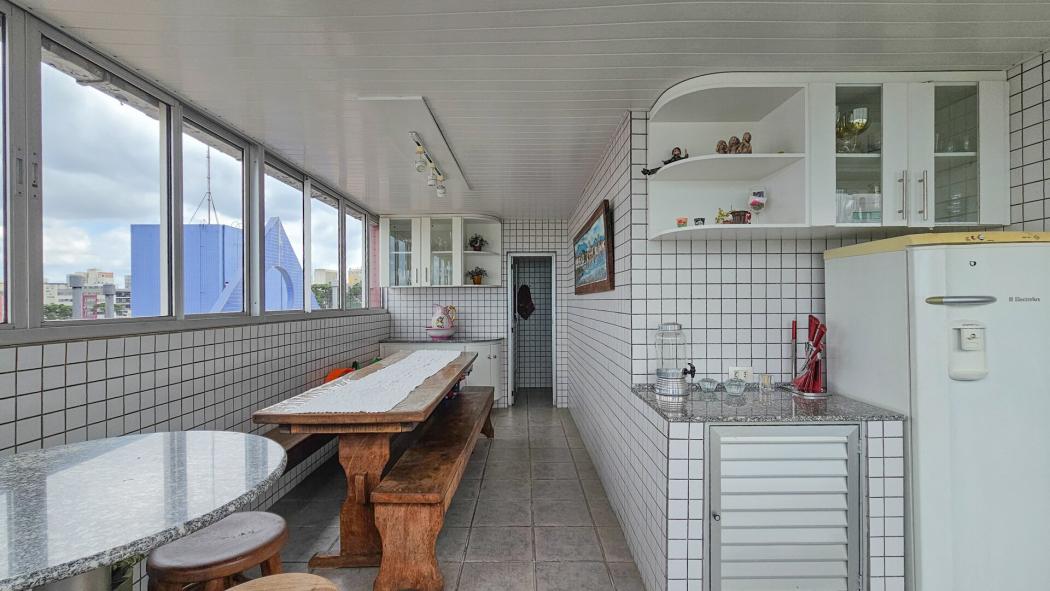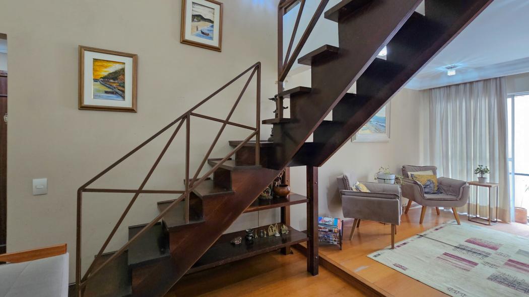 Cobertura de 150 m² privativo com 3 dormitórios sendo 1 suíte e 2 vagas de garagem livres. Área privativa do apartamento aumentada com mezanino e conta com espaço gourmet e piscina no segundo pavimento.