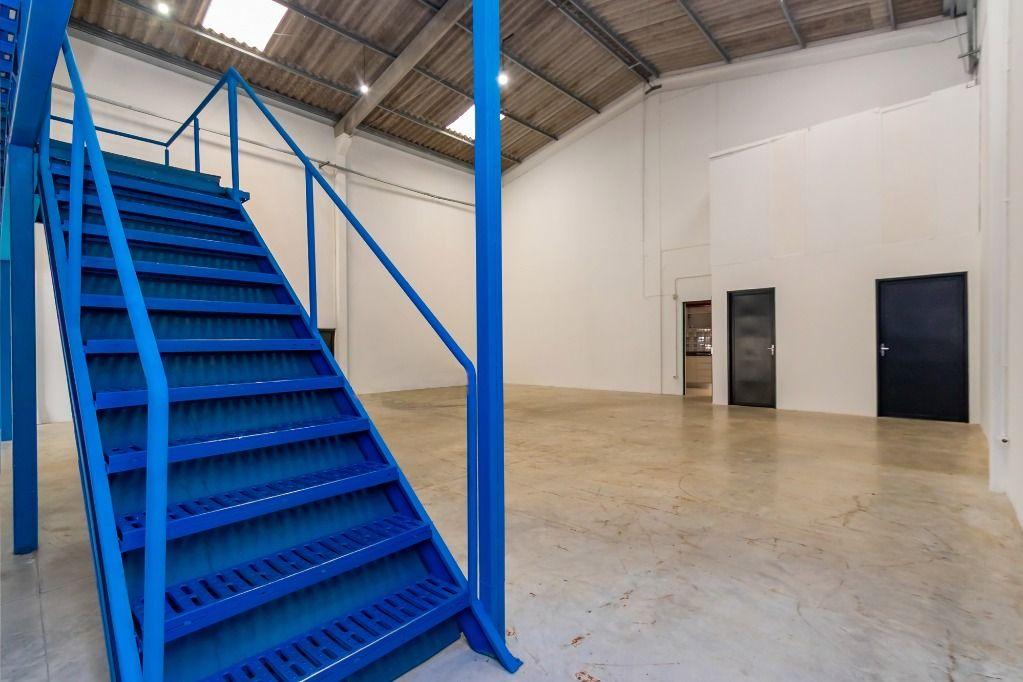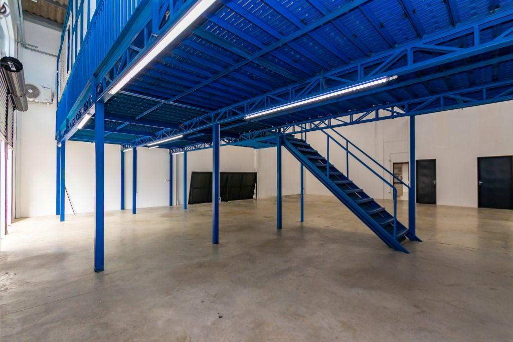 Mezanino estruturado em metal com paredes internas revestidas em MDF