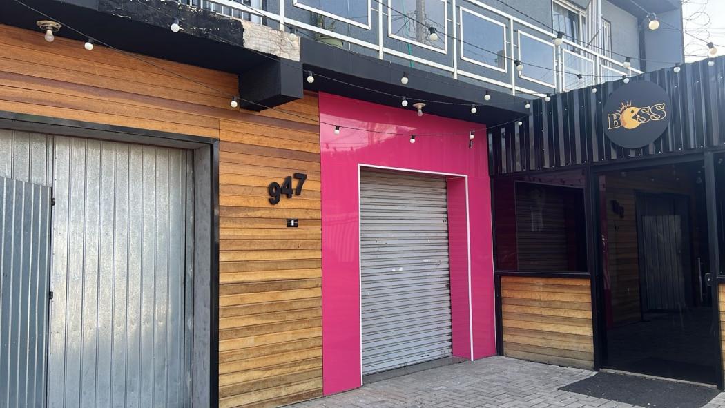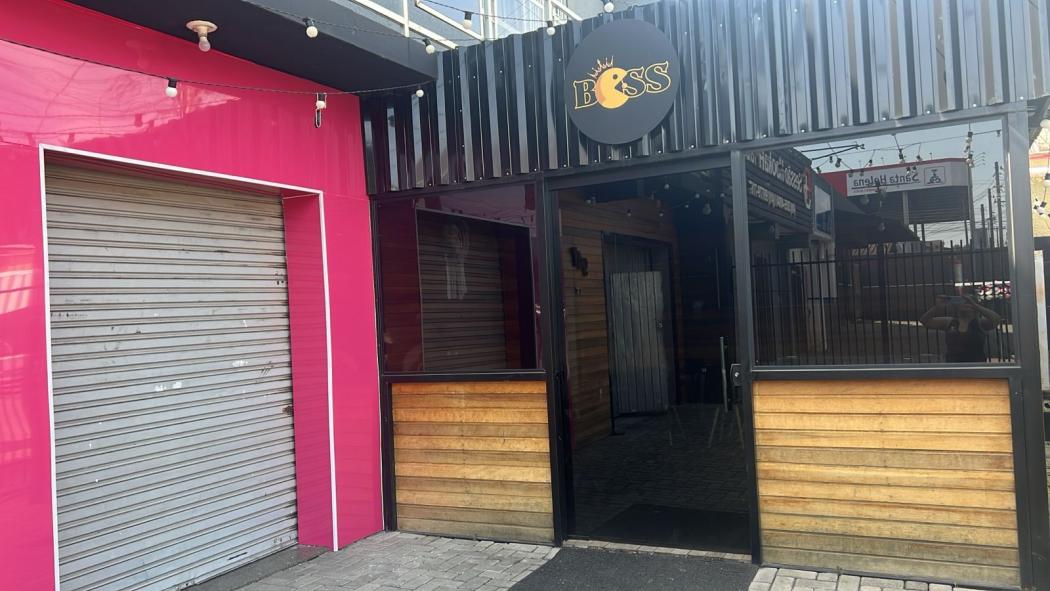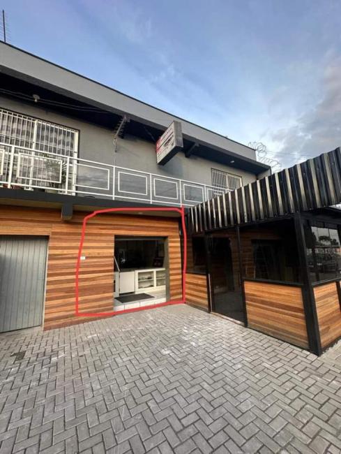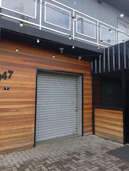 3 portas em aço, sendo duas lojas interligadas, com 1 banheiro e 1 garagem que cabe até 3 carros.