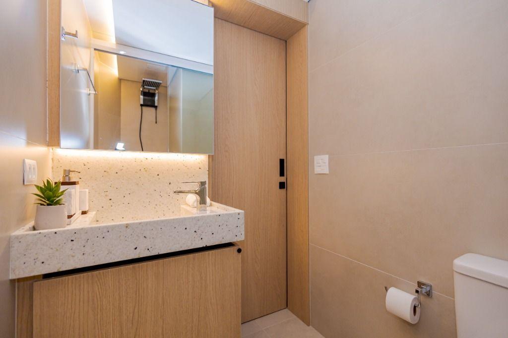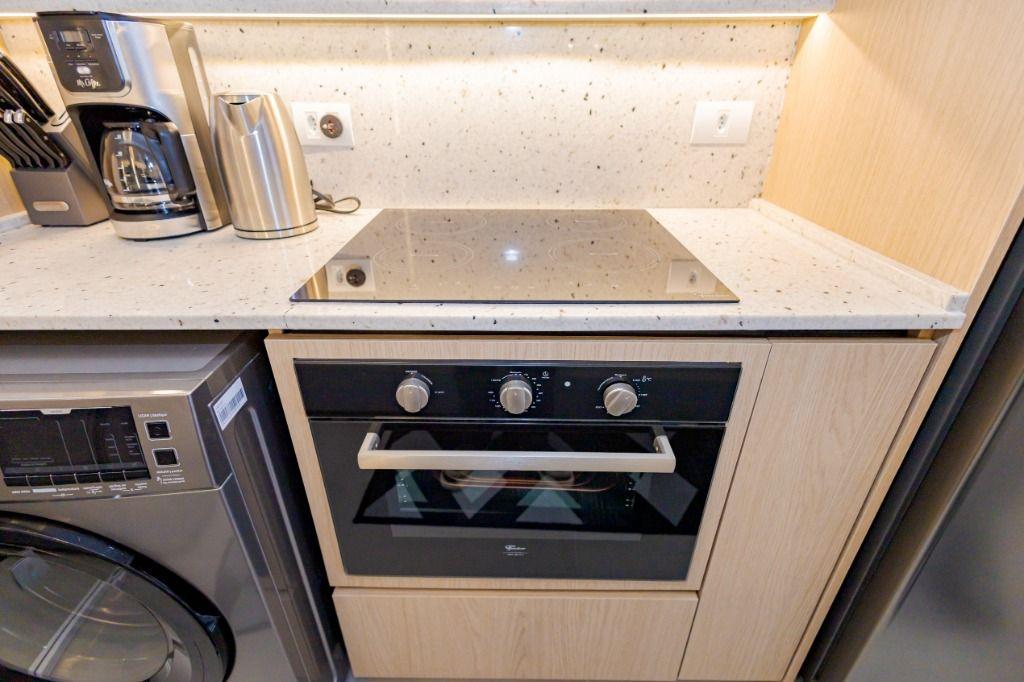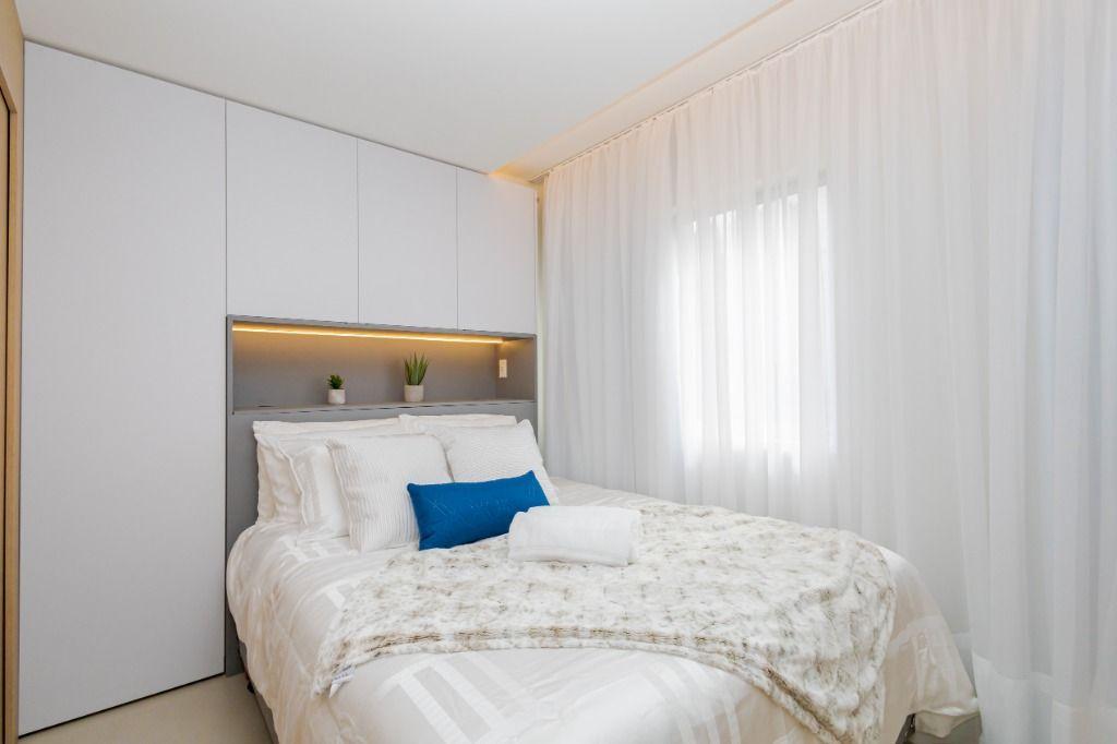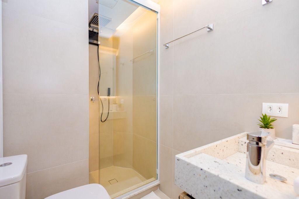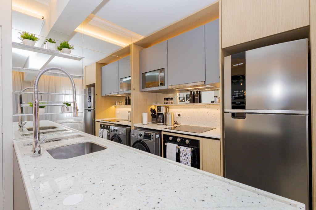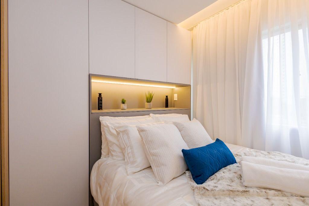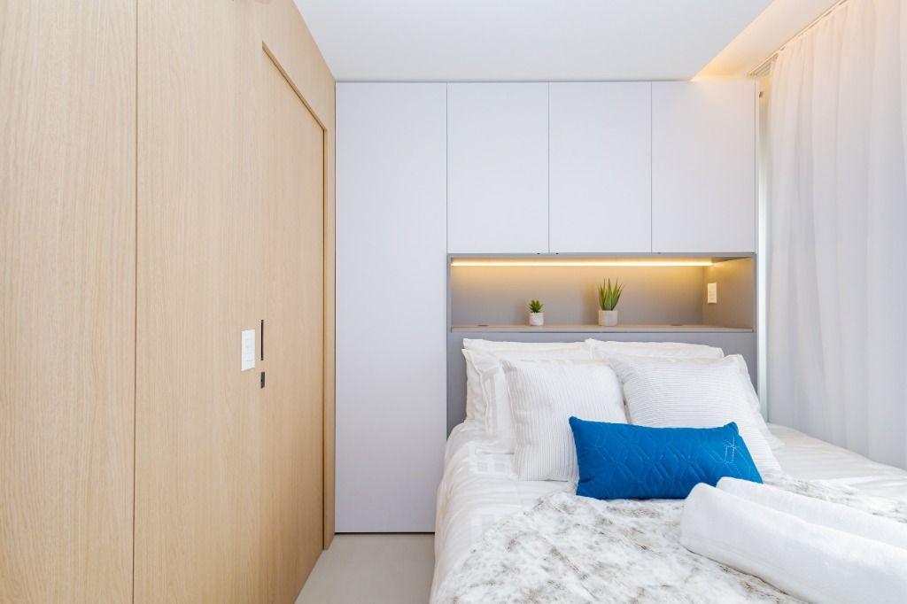 Studio todo reformado com acessórios de qualidade e ótimo gosto. Cozinha planejada com móveis de primeira linha, ficando cooktop, forno e coifa. Sala conjugada com o quarto em teto em gesso e iluminação em led. No banheiro vidro em blindex. O imóvel está localizado em frente a Faculdade Evangélica Mackenzie no Bigorrilho.