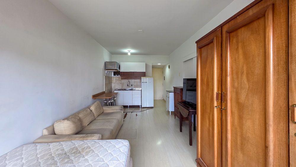 A unidade é um Studio compacto e muito funcional, com ambiente integrado de dormitório e estar, cozinha e banheiro privativo, perfeito para quem busca praticidade no dia a dia. No 4º andar, o apartamento tem boa iluminação natural, vista aberta e posição solar oeste, trazendo conforto e sensação de amplitude ao espaço.