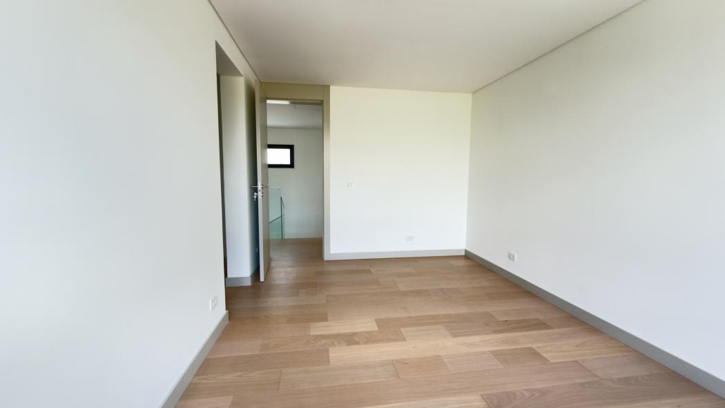 Ambientes bem resolvidos e tecnologia aplicadaA casa foi projetada para oferecer funcionalidade real. As janelas amplas garantem ventilação e iluminação naturais em todos os ambientes. Na área íntima, o piso de madeira estruturada traz aconchego. Na área social, o porcelanato 1,20 x 1,20 reforça o caráter contemporâneo. O imóvel conta ainda com iluminação automatizada, previsão para elevador, fechaduras magnéticas, aquecedor de passagem, depósito amplo na garagem e quatro vagas cobertas, com duas tomadas preparadas para carro elétrico.