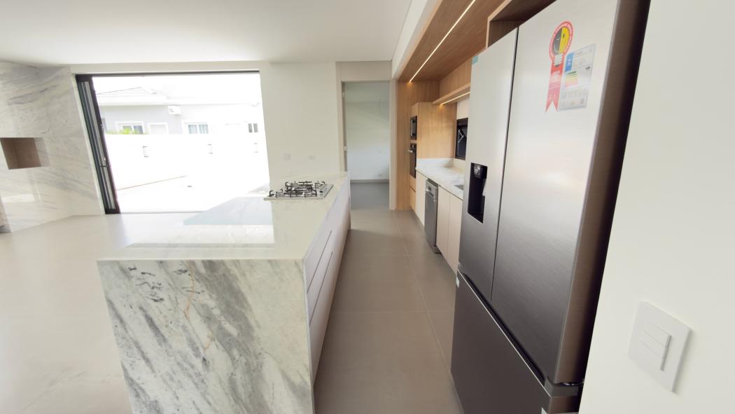 Cozinha integrada, funcional e pronta para usoA cozinha segue o conceito americano, totalmente integrada à área social. Equipada com marcenaria Casttini e eletrodomésticos de alto desempenho, oferece ilha central, geladeira francesa de três portas, cooktop de cinco queimadores, forno elétrico, micro-ondas de embutir, lava-louças e pia de apoio para a churrasqueira. Um espaço pensado para transformar a rotina e valorizar a convivência.