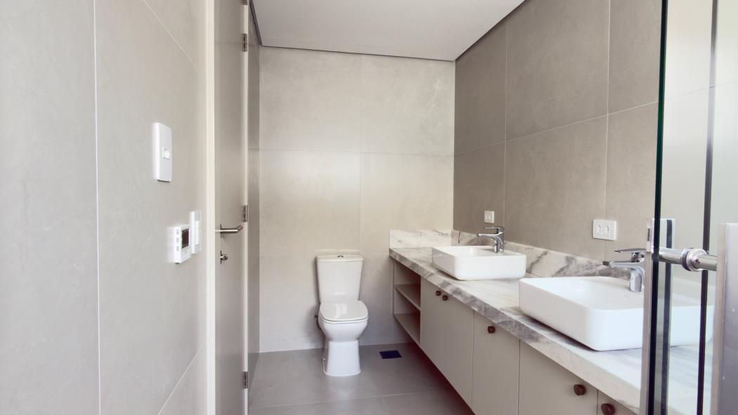 O pé-direito de 2,80 metros contribui para uma atmosfera leve e refinada. As quatro suítes, todas voltadas para o leste, recebem sol da manhã, garantindo conforto térmico e iluminação ideal. Os banheiros contam com piso aquecido, ventilação natural e brises ajustáveis, reforçando eficiência, conforto e sofisticação.