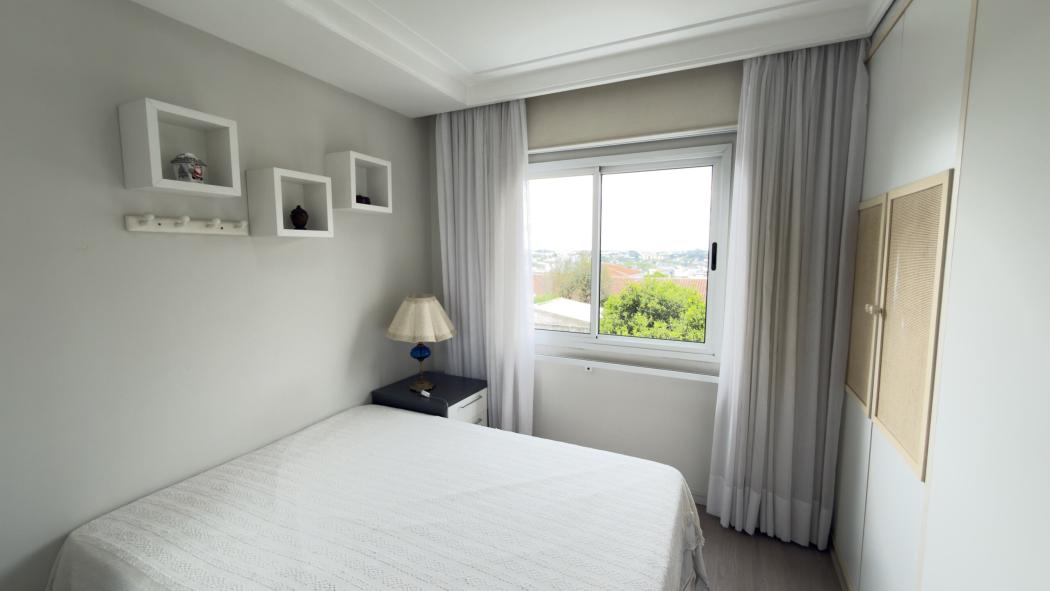 No pavimento íntimo, o silêncio predomina. São três dormitórios, todos bem iluminados e arejados. A suíte se destaca pelo espaço e pelo closet generoso, oferecendo conforto na medida certa, sem excessos.