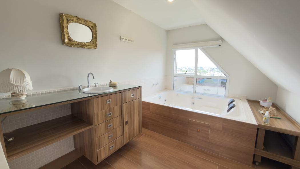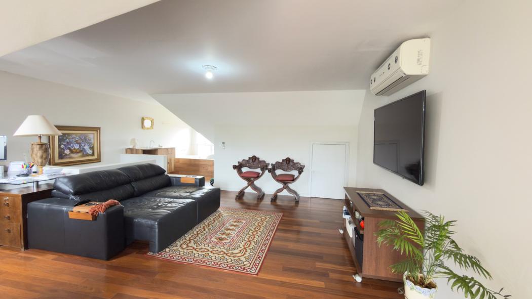 O ático é o ponto alto do imóvel. Um escritório completo, com excelente iluminação natural, perfeito para quem trabalha em casa. Ao lado, uma sala de bem-estar com banheira dupla de hidromassagem, criando um refúgio acima das árvores, com vista aberta, privacidade e uma rara sensação de tranquilidade urbana.