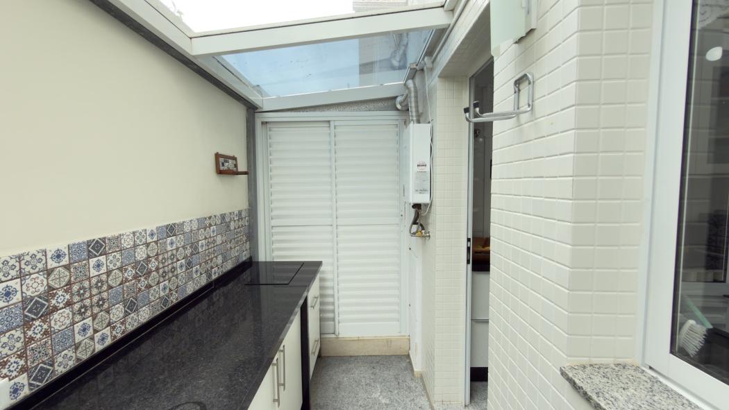 Lavanderia com bancada ampla e cooktop auxiliar