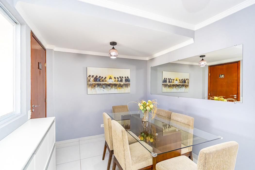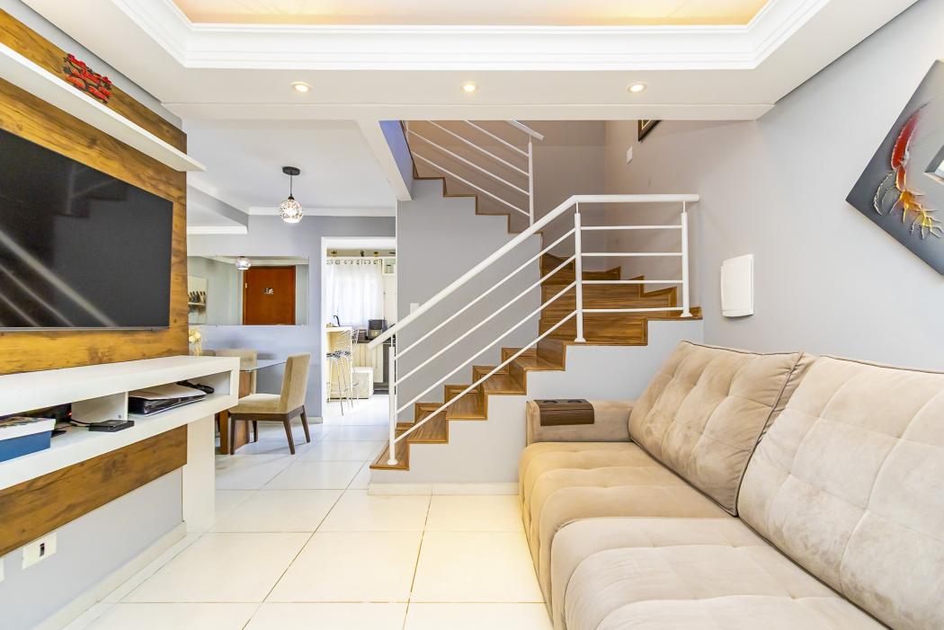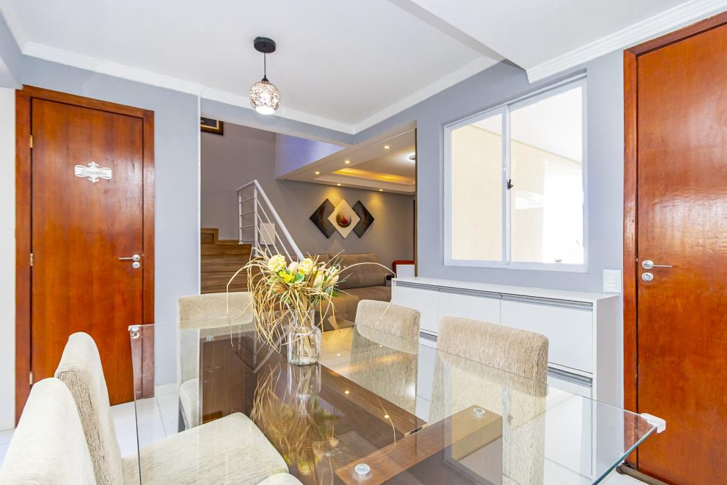 Com 106 m² de área averbada e 135 m² de área construída, o sobrado apresenta ambientes bem distribuídos e pensados para uma rotina fluida e organizada. No pavimento térreo, a sala de estar é separada da sala de jantar, garantindo maior conforto e privacidade nas áreas sociais. A cozinha com armários planejados oferece funcionalidade e bom aproveitamento, além de lavabo, atendendo com elegância às visitas.