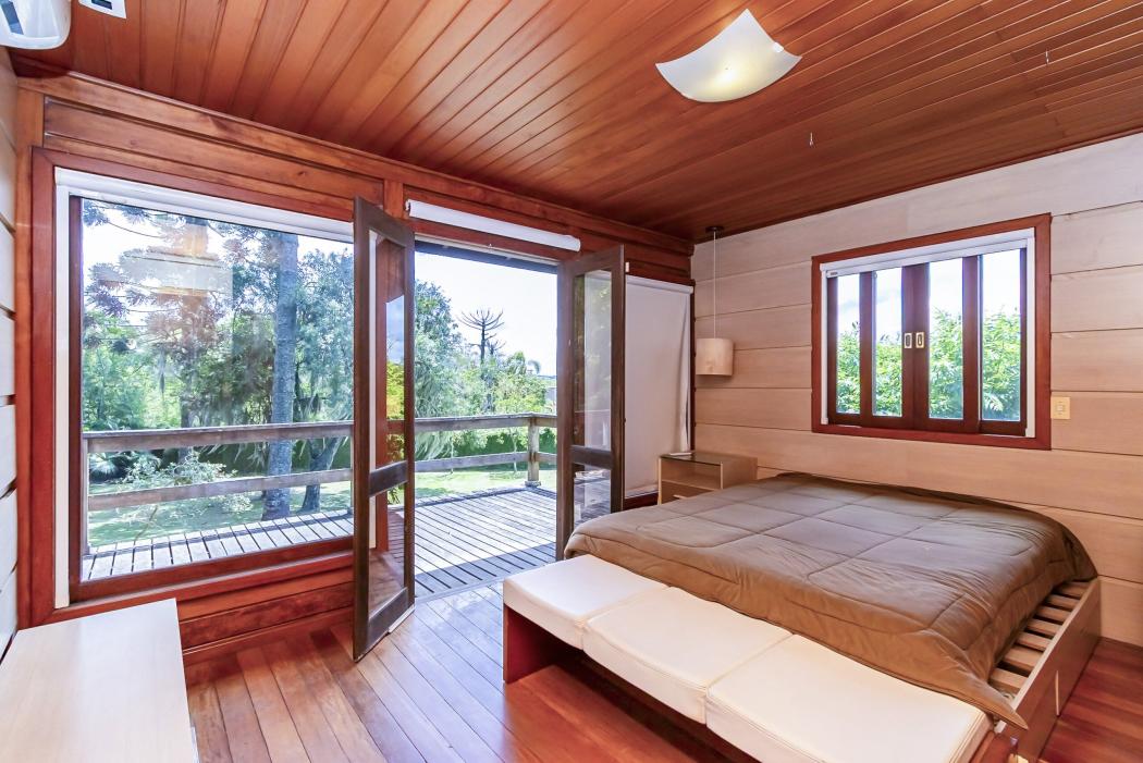 Como um diferencial especial, a propriedade conta ainda com uma segunda casa em madeira, inspirada nas tradicionais cabanas americanas, perfeita para hóspedes, home office, ateliê ou momentos de recolhimento e contemplação.