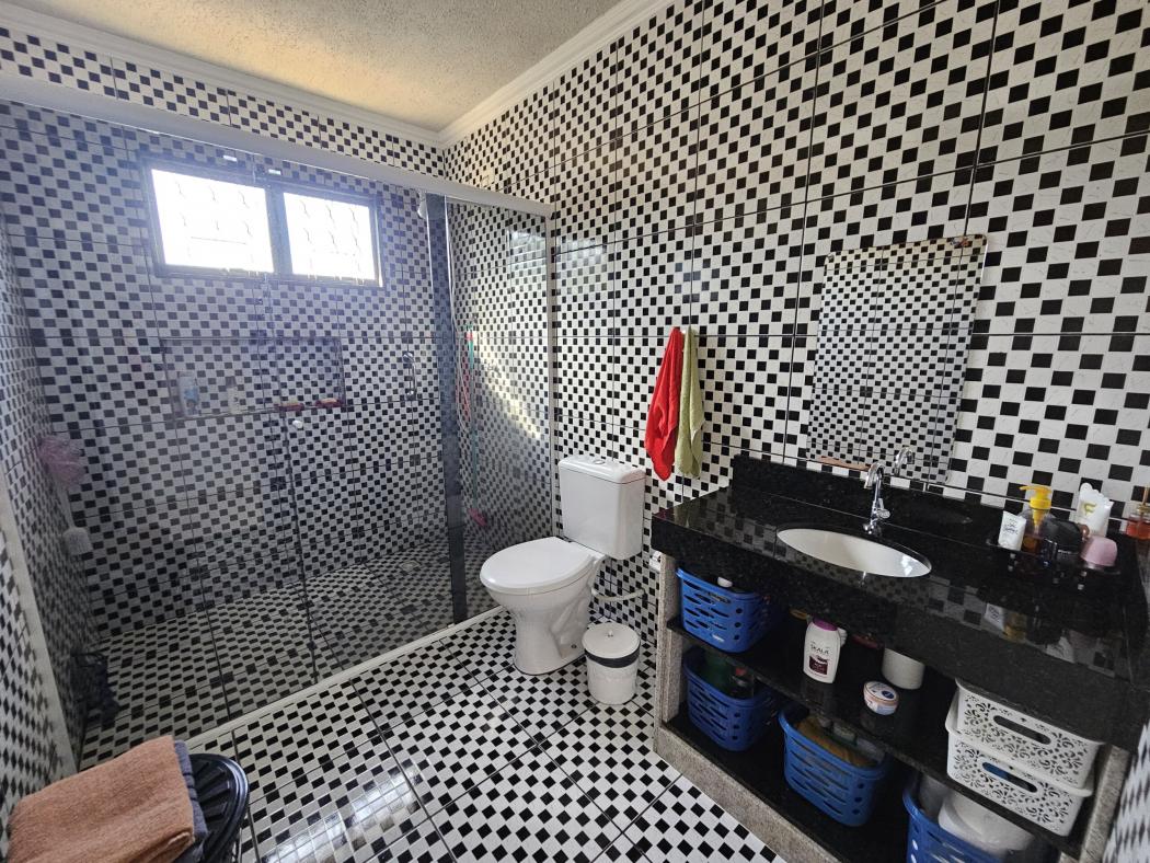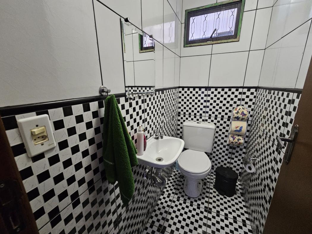 A sala de estar é um convite ao relaxamento, iluminada naturalmente graças às suas amplas janelas que permitem a entrada generosa de luz natural. Os banheiros seguem o padrão de acabamento, com revestimento até o teto e box de vidro que conferem elegância e facilidade na manutenção. Além disso, o imóvel possui uma prática área de serviço externa coberta, proporcionando mais comodidade nas tarefas do dia a dia. A varanda é outro destaque deste sobrado, oferecendo um espaço extra para lazer ou contemplação das vistas ao redor.