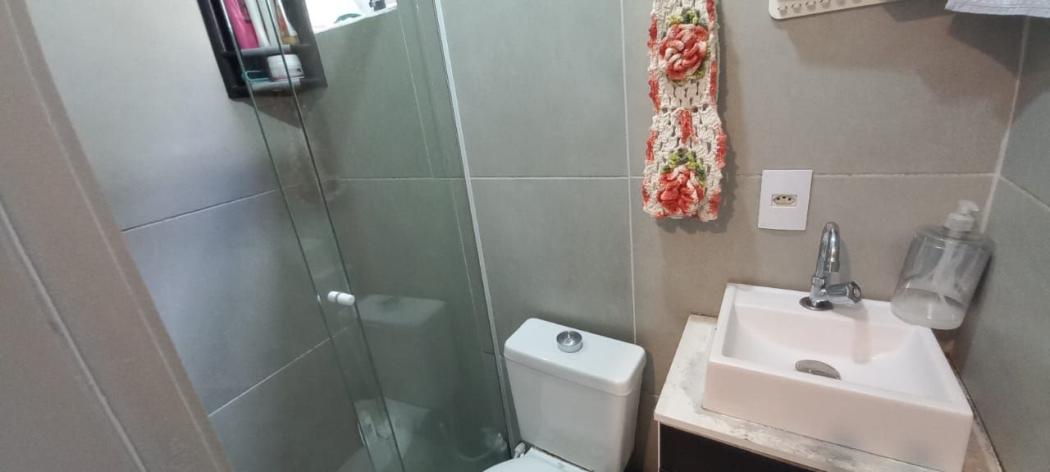 - Banheiros com Box de vidro, pia com armário e ventilação natural;