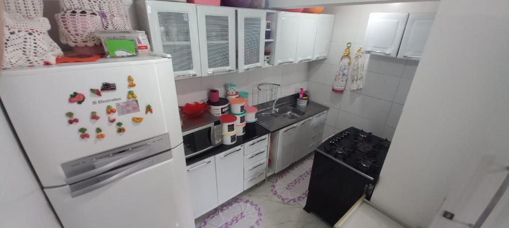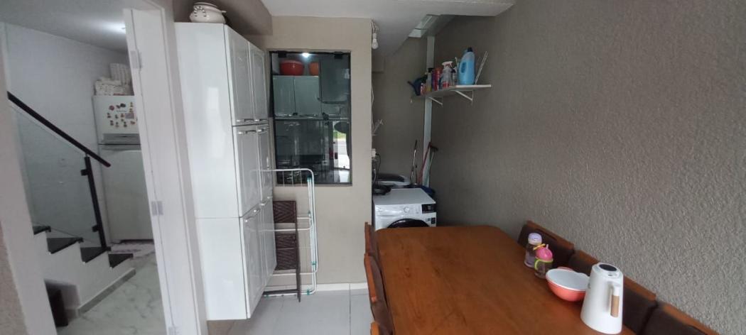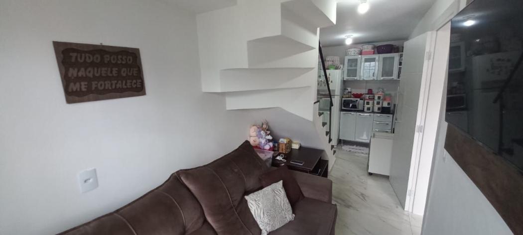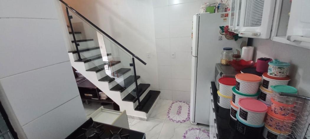 Sobrado de frente para a rua com sala, cozinha, 2 dormitórios, sendo 1 suíte, banheiro social, área de serviço e 1 vagas de garagem.