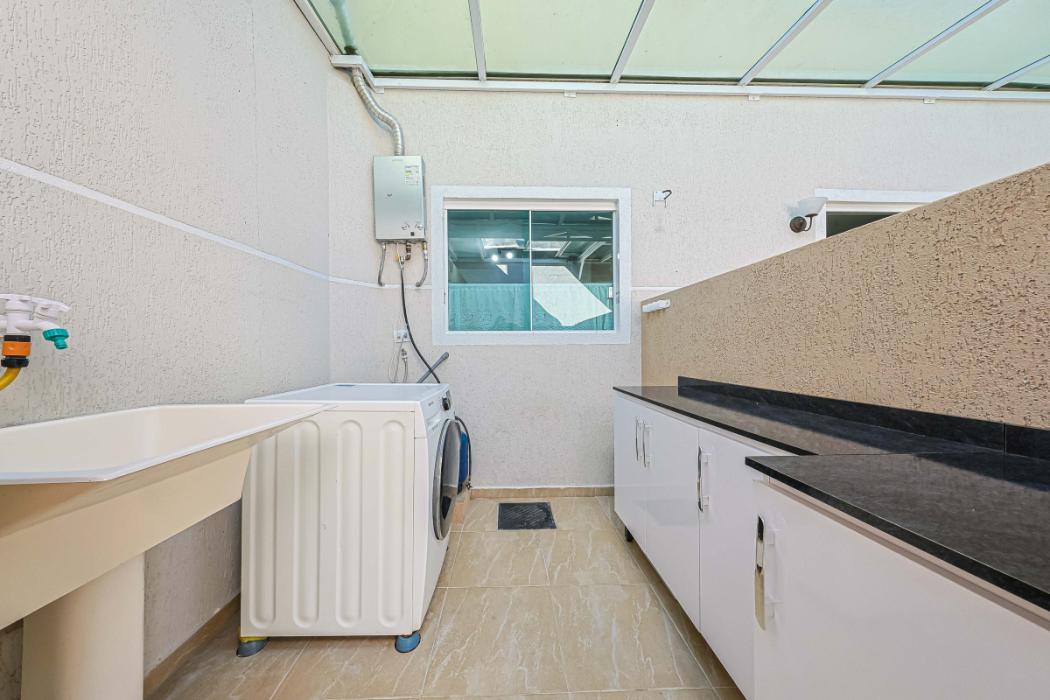 No piso térreo, medindo 55,80 m², ambientes integrados e elegantes, sala de estar com rack, sala de jantar e cozinha com armários planejados, com sanca de gesso e lavabo, em um espaço acolhedor. Nos fundos, um verdadeiro convite para momentos especiais: ampla área gourmet coberta, com cerca de 30m², teto retrátil, armários planejados e um ambiente ideal para receber amigos e familiares. A lavanderia é separada, com armário sob medida, mantendo tudo organizado e funcional.